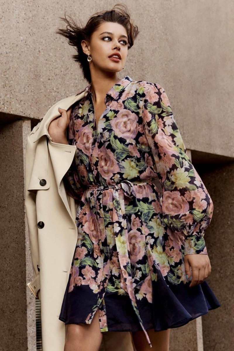 Ada Baskılı Kuşaklı Flare Mini Elbise