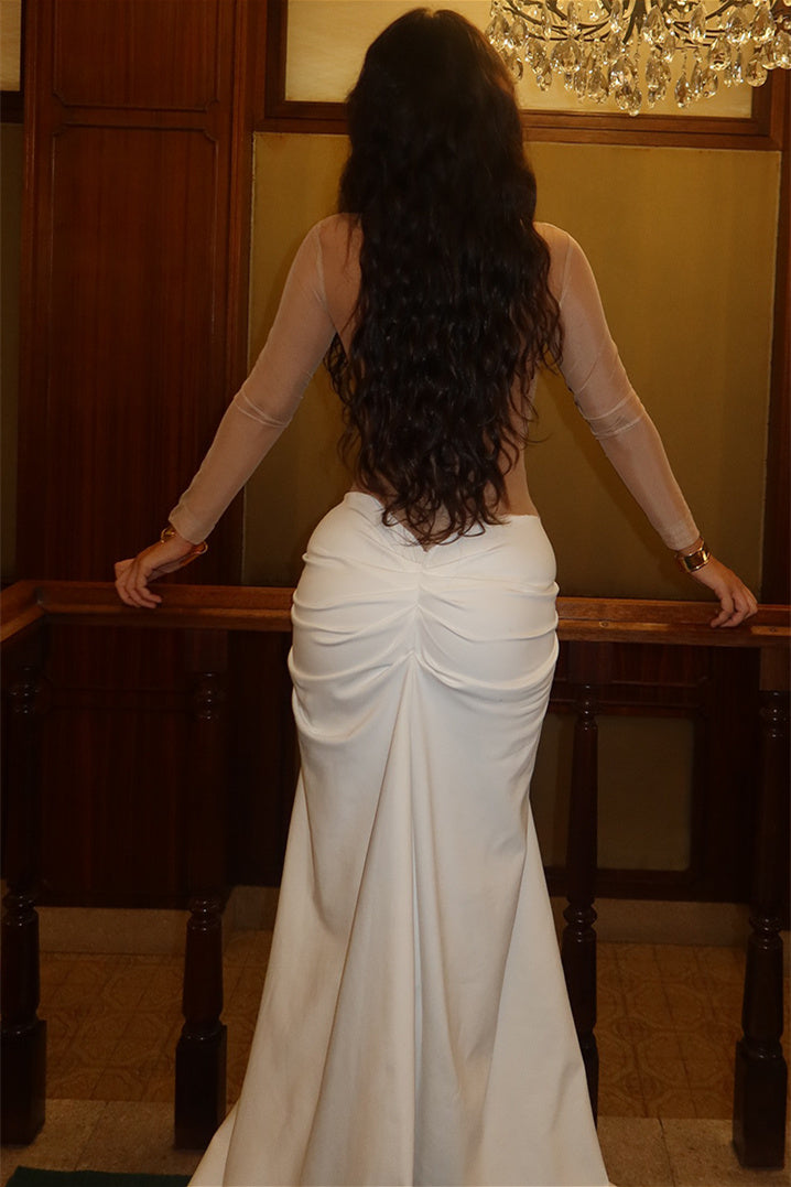 Amanda Renk Bloklu Drapeli Uzun Elbise