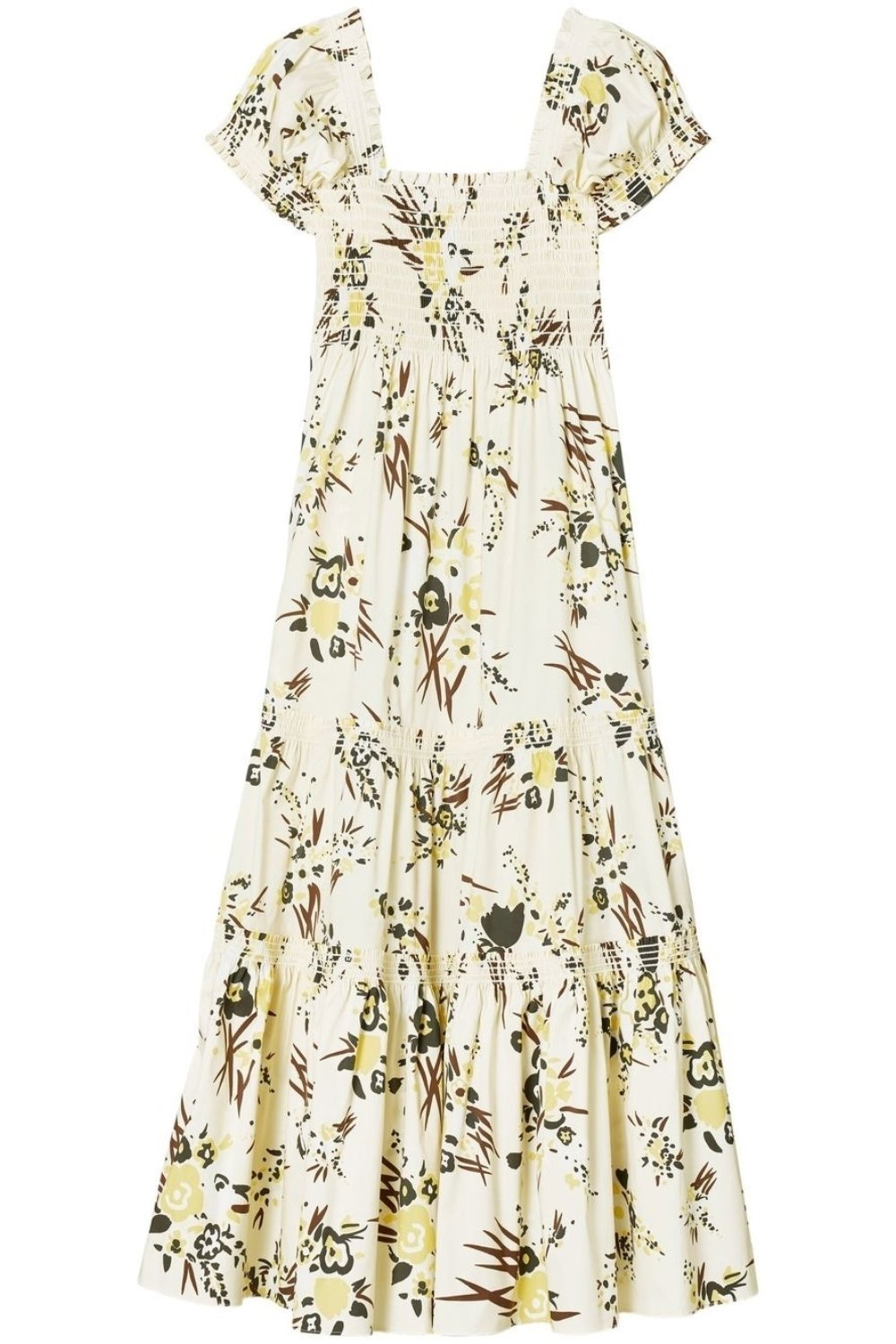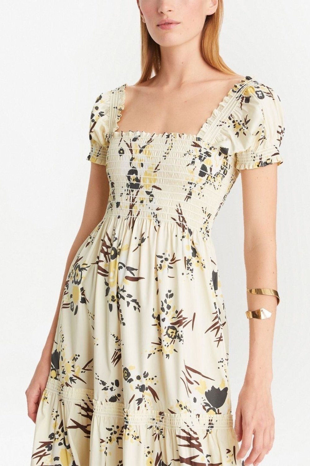 Amity Baskılı Büzgülü Korsajlı Uzun Elbise