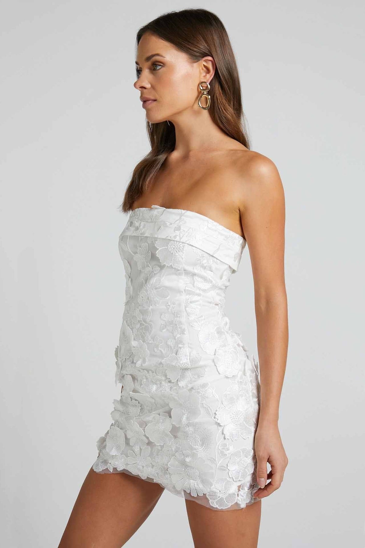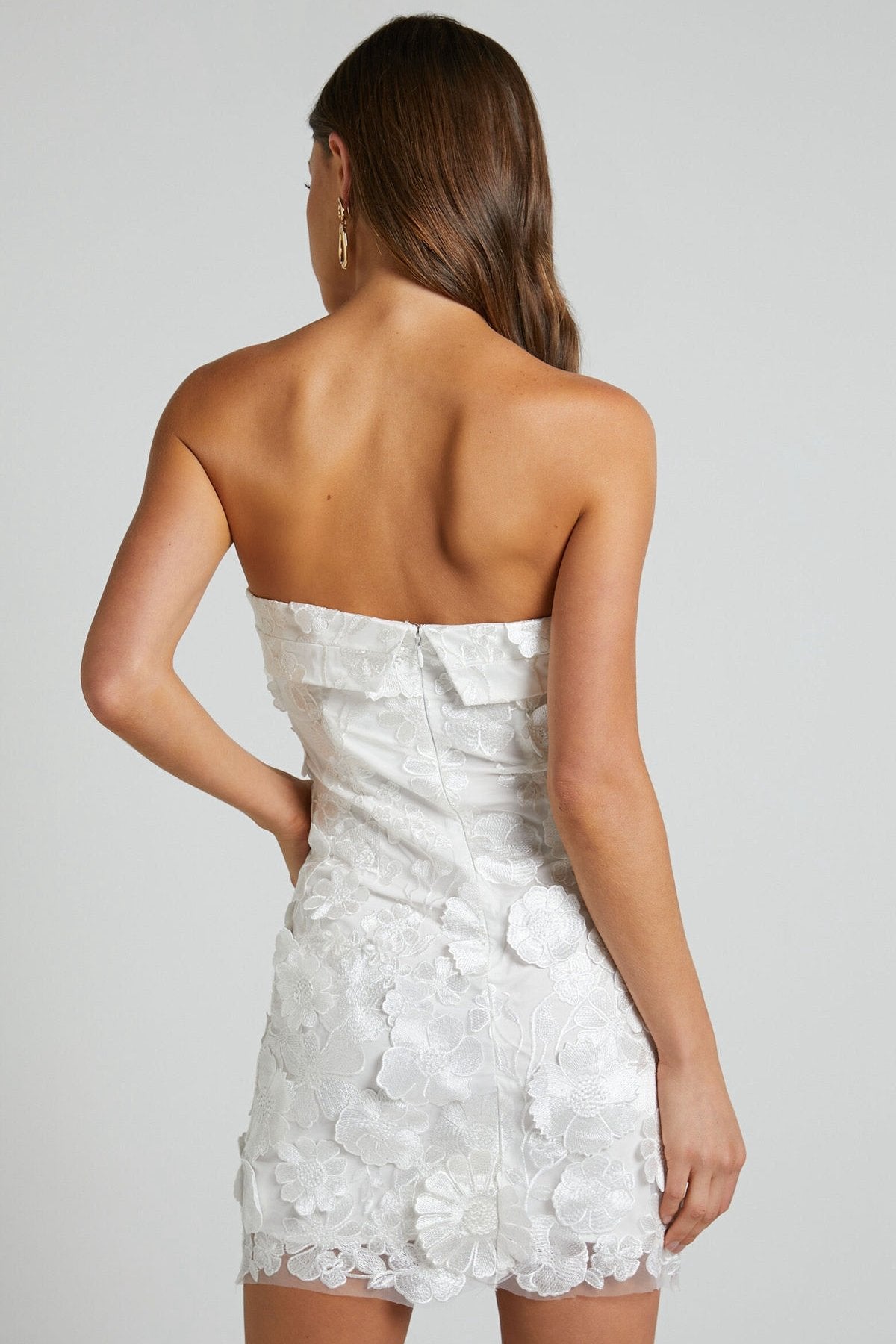 Arlene İşlemeli Dantel Mini Straplez Elbise