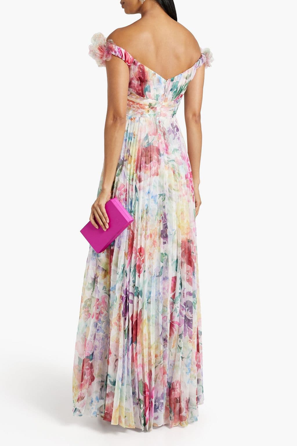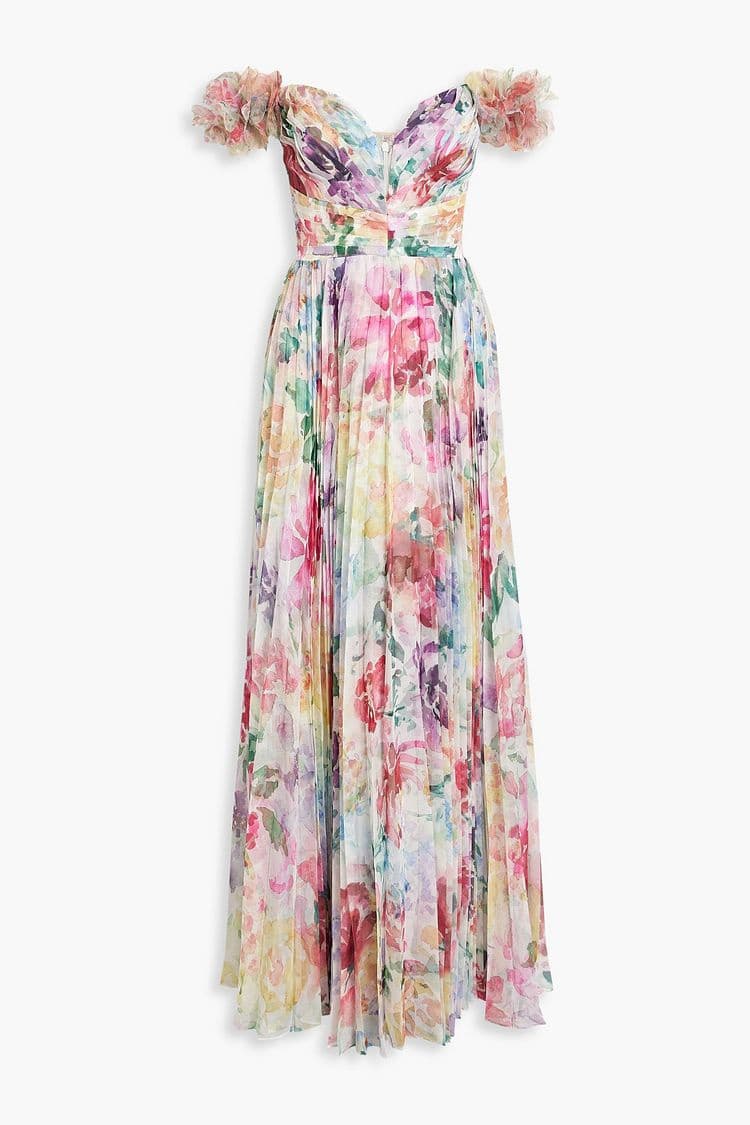 Belinda Omuzu Açık Pileli Uzun Elbise