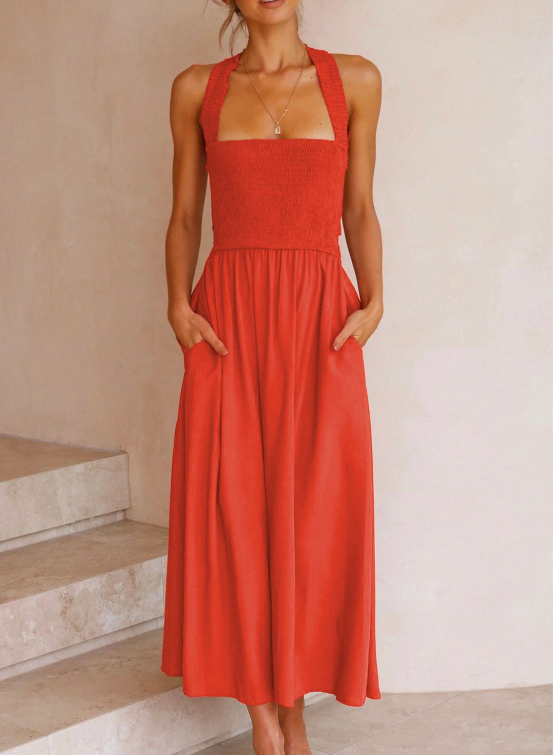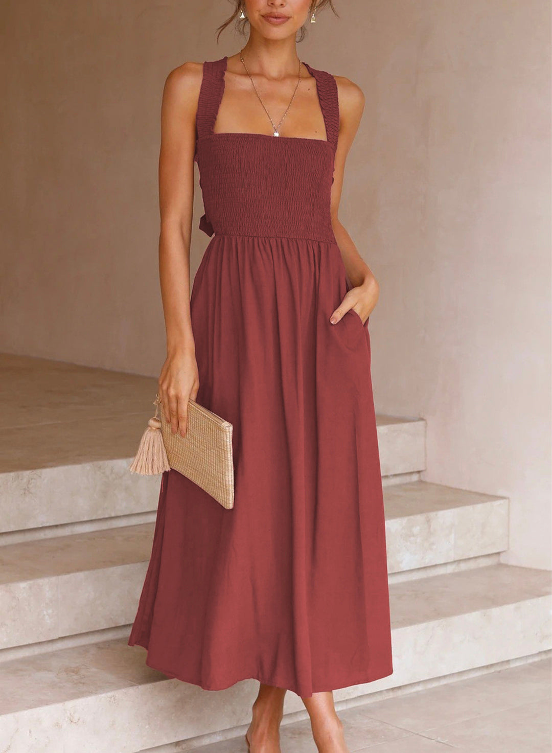 Gipeli Çapraz Sırt Cepli Elbise