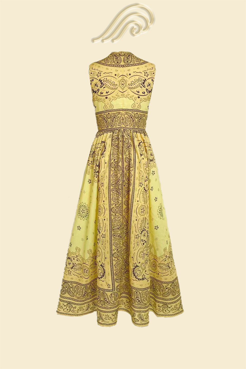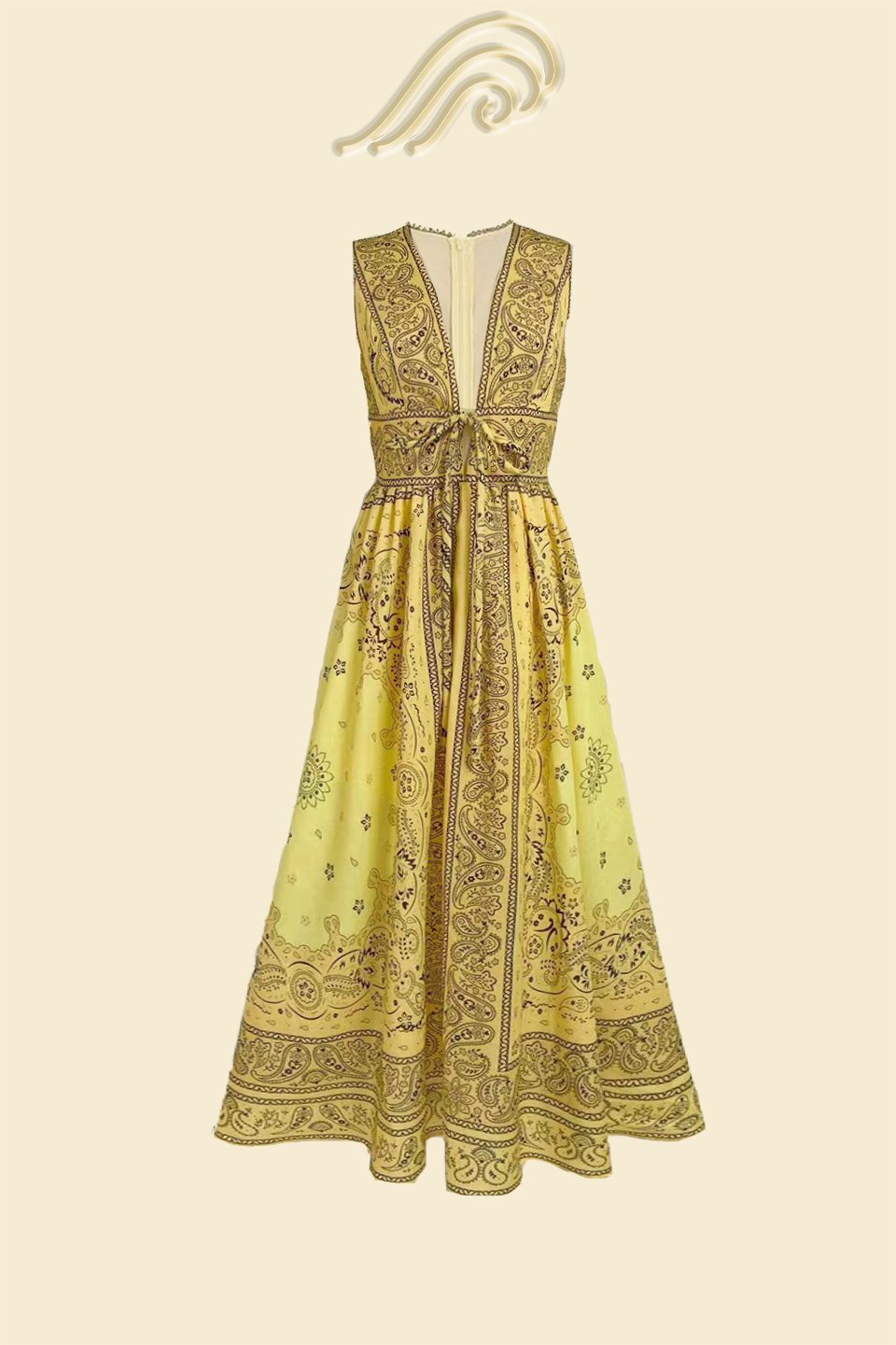 Simona Baskılı V Yaka Flare Maxi Elbise