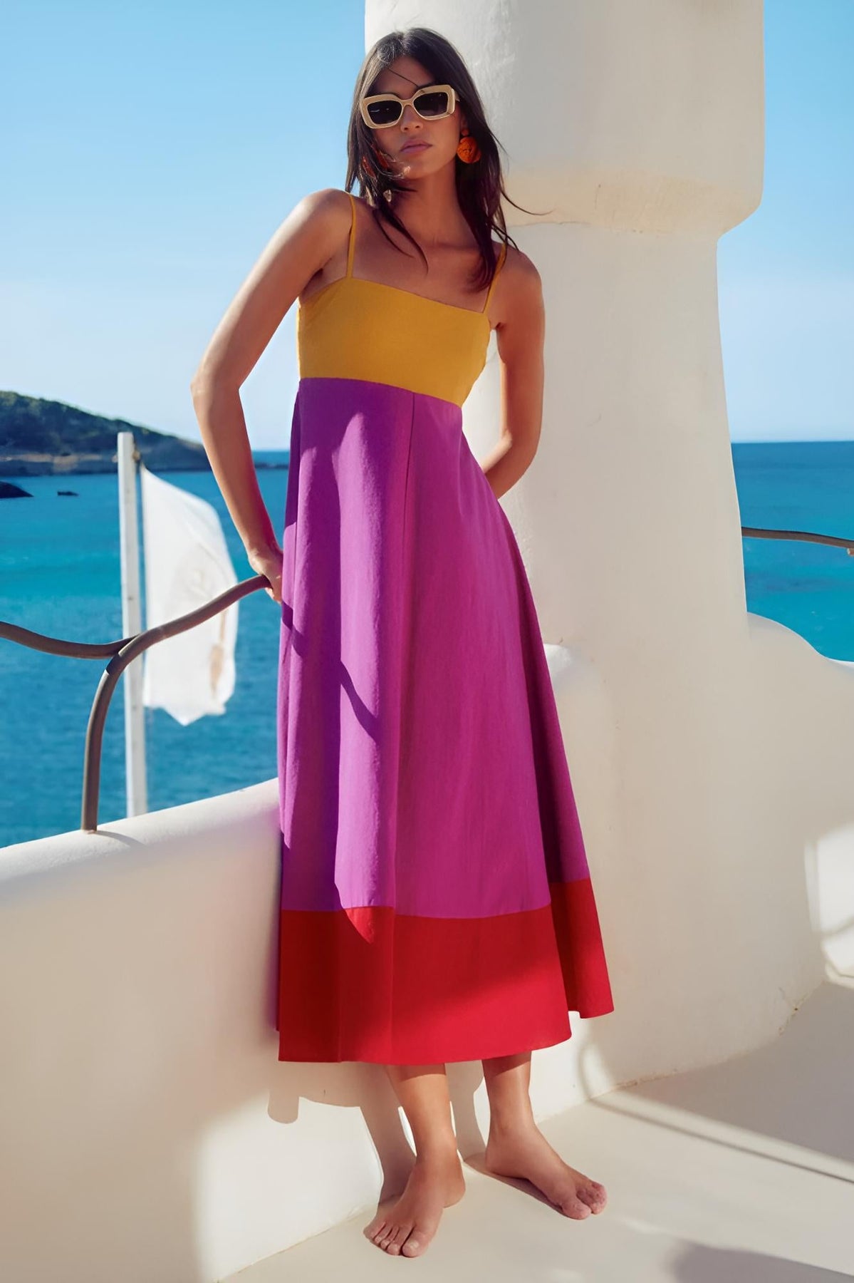 - Tasarım: Spagetti kayışlarla modaya uygun renk bloklu tasarım