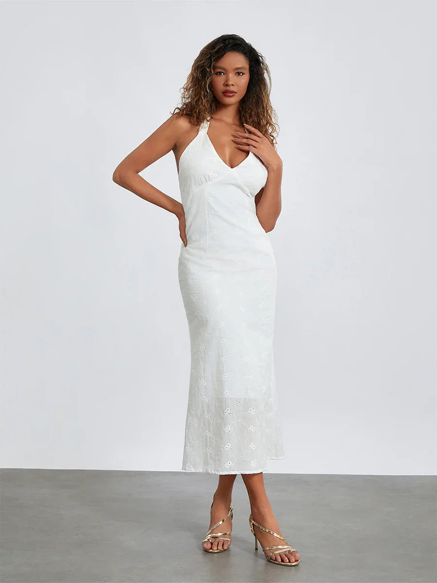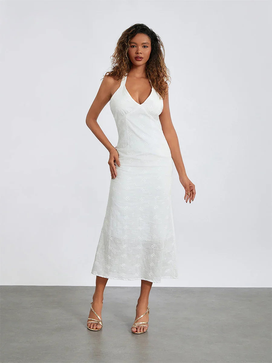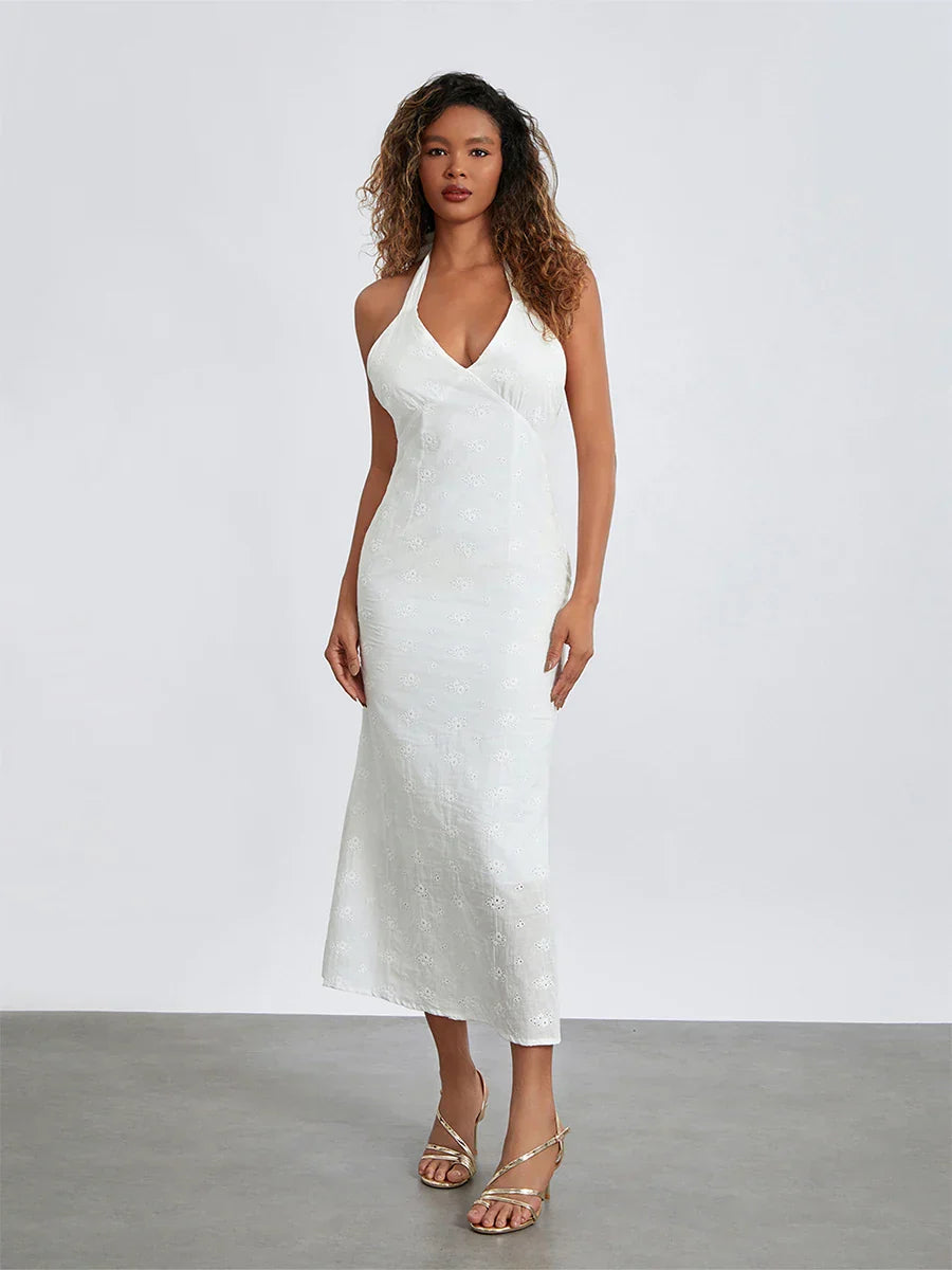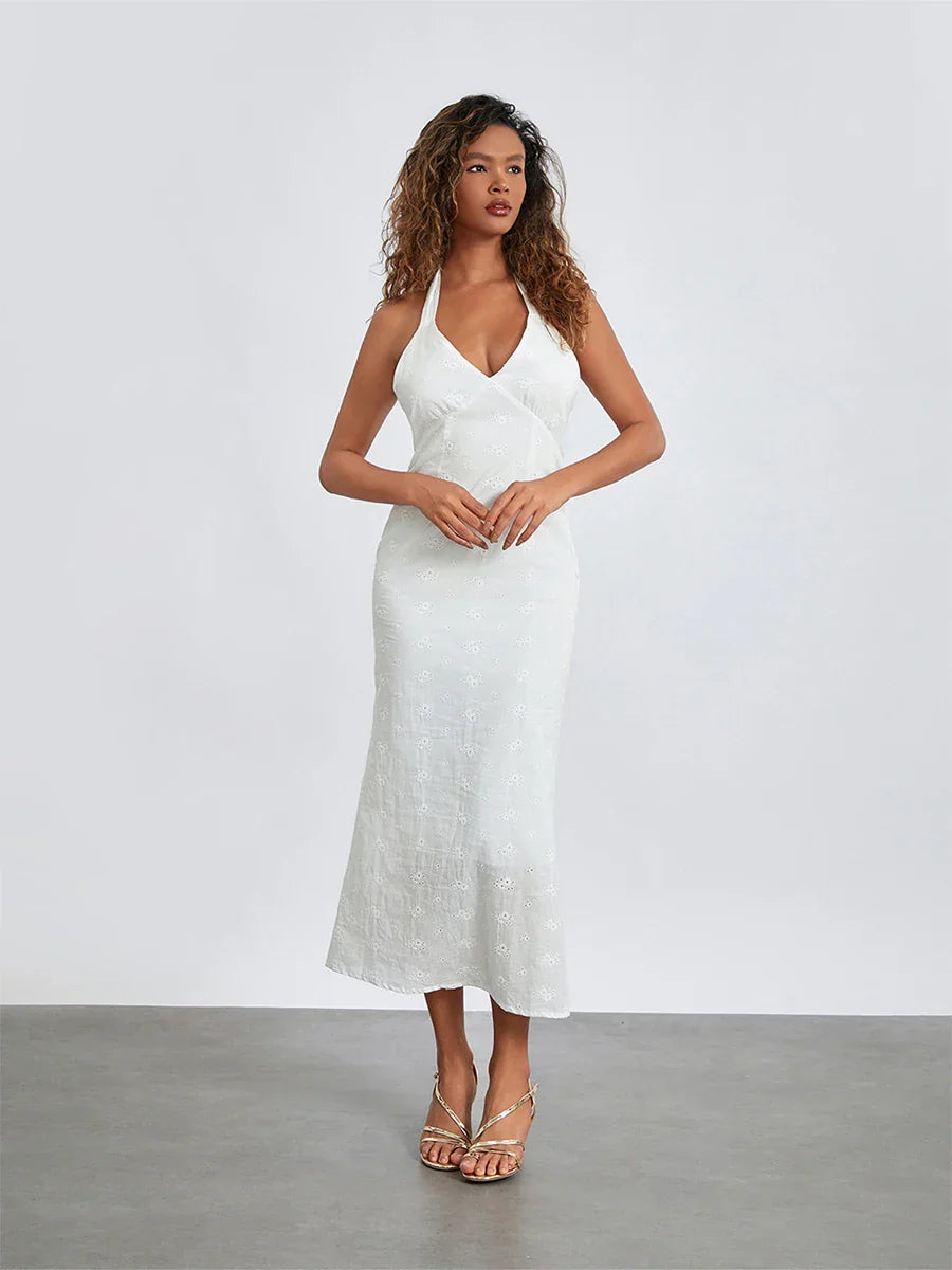 Desenli Kumaş V Yaka Elbise