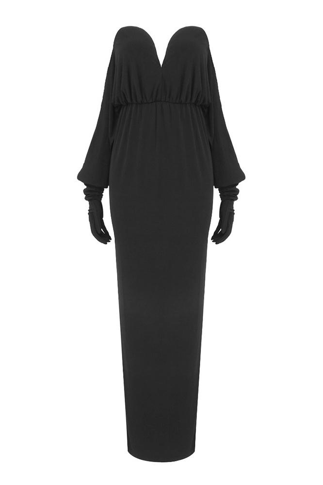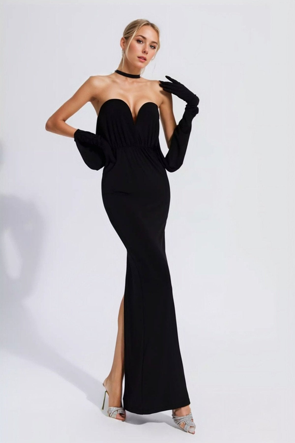 Octavia Straplez Dökümlü Eldivenli Maxi Elbise
