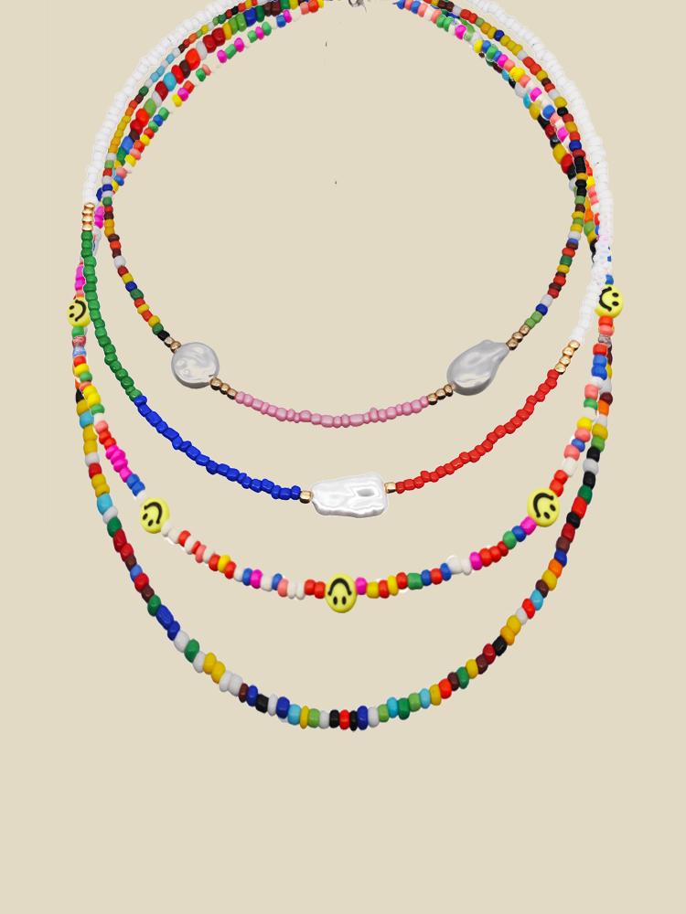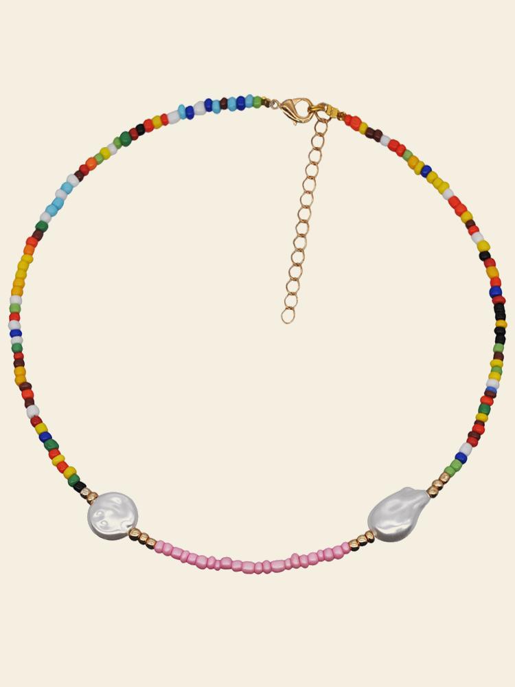 Sally Gökkuşağı Darı Boncuklu İnci Kolye Seti