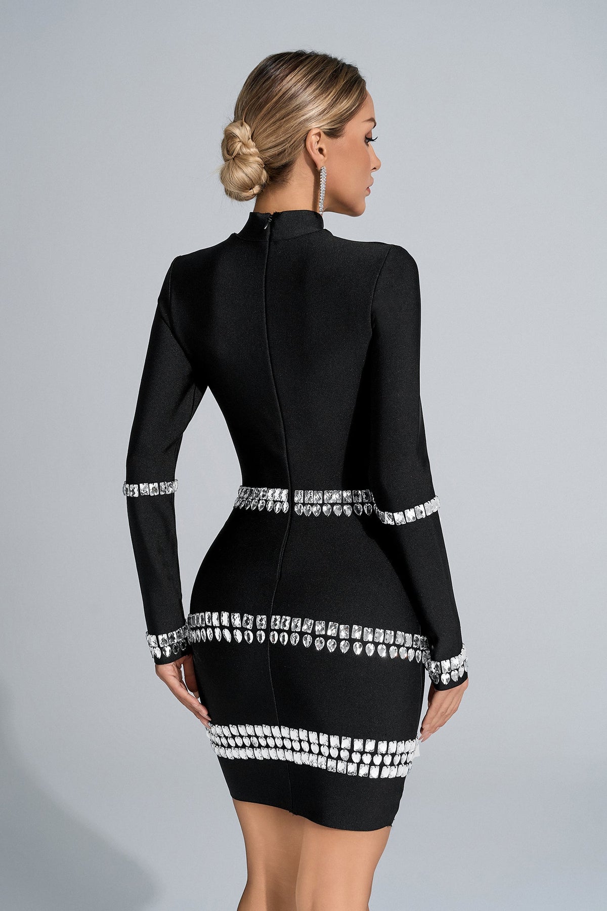 Elva Siyah Pırlanta Uzun Kol Mini Etek