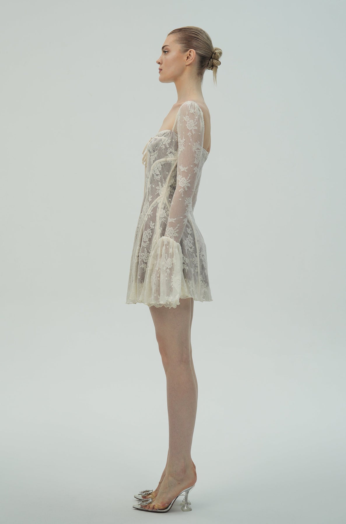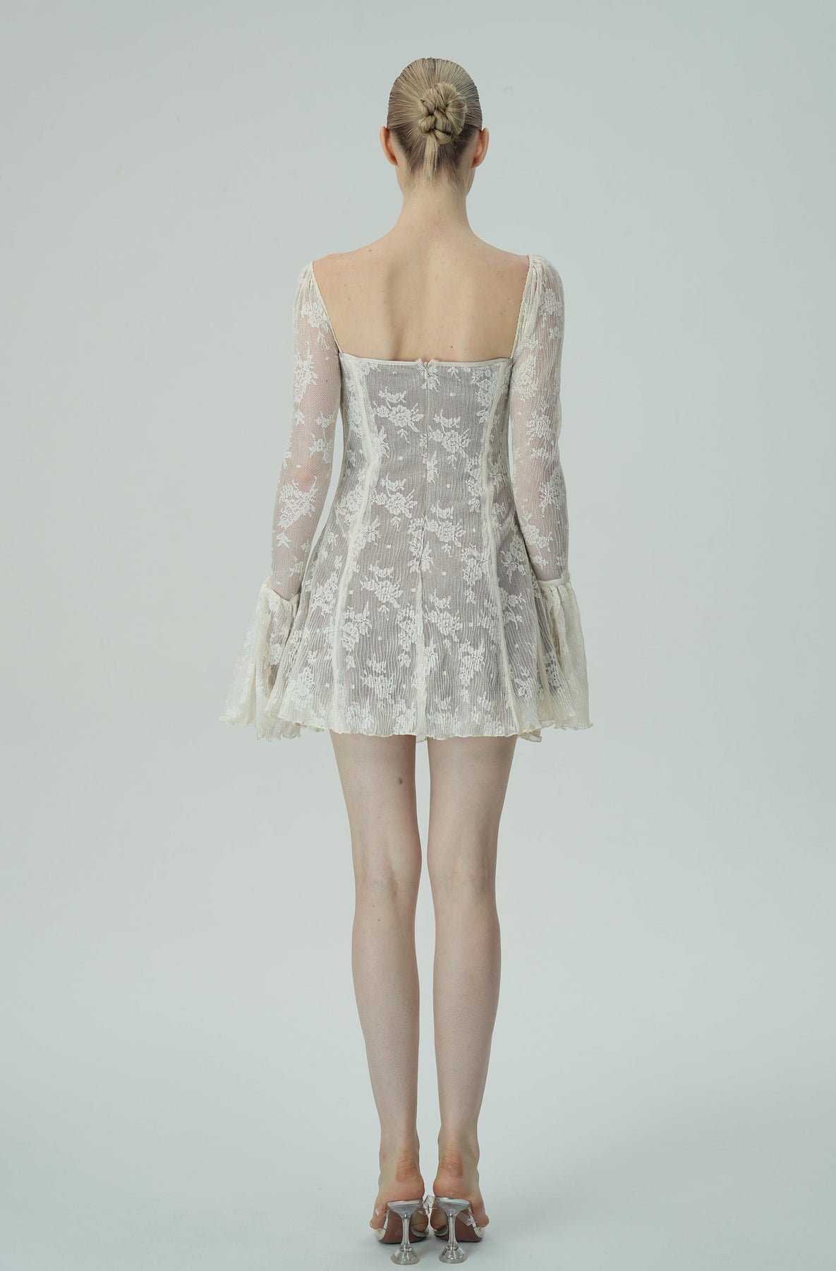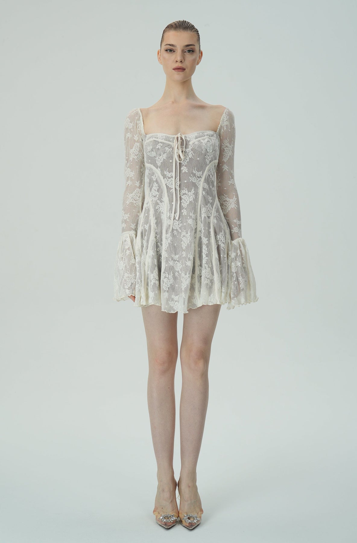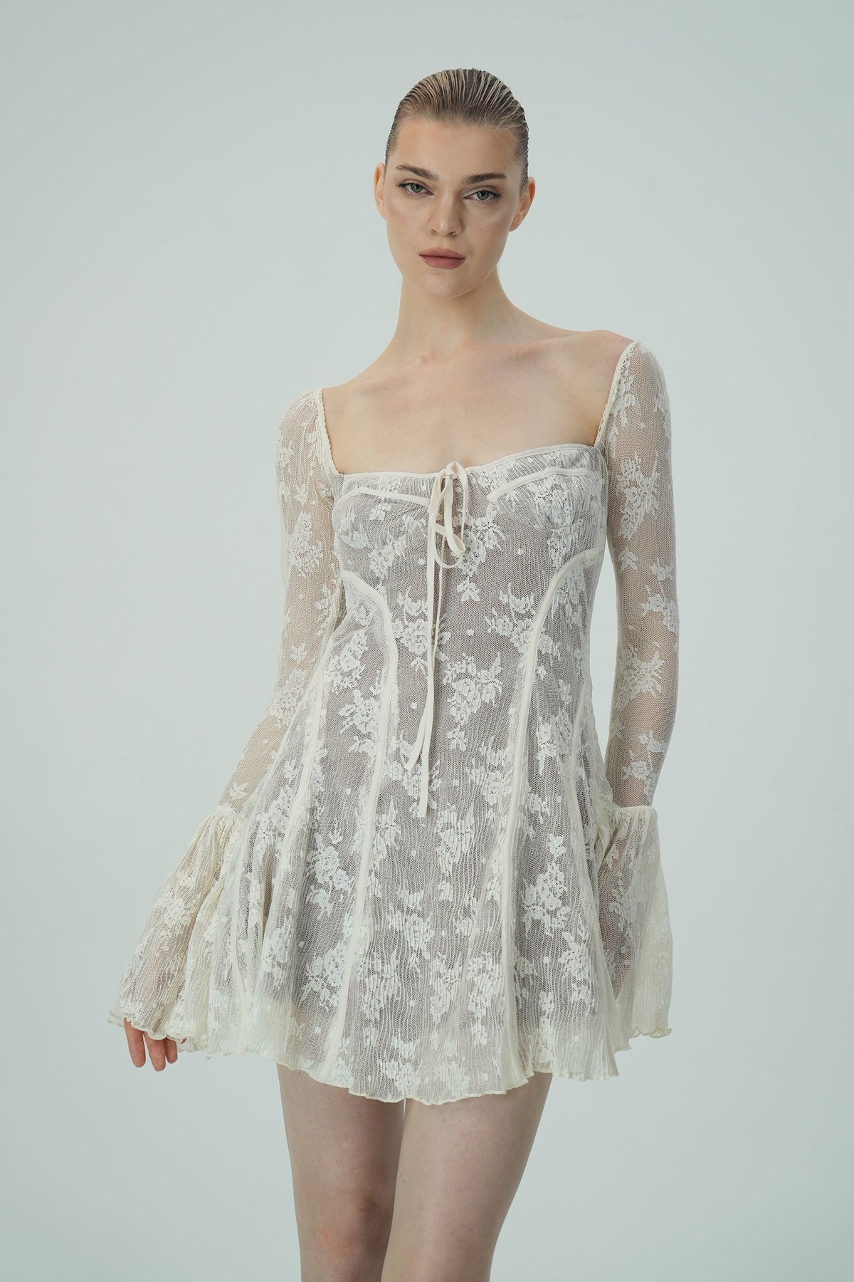 Dantel Detaylı Bağcık Önü Mini Elbise – Romantik ve Feminen