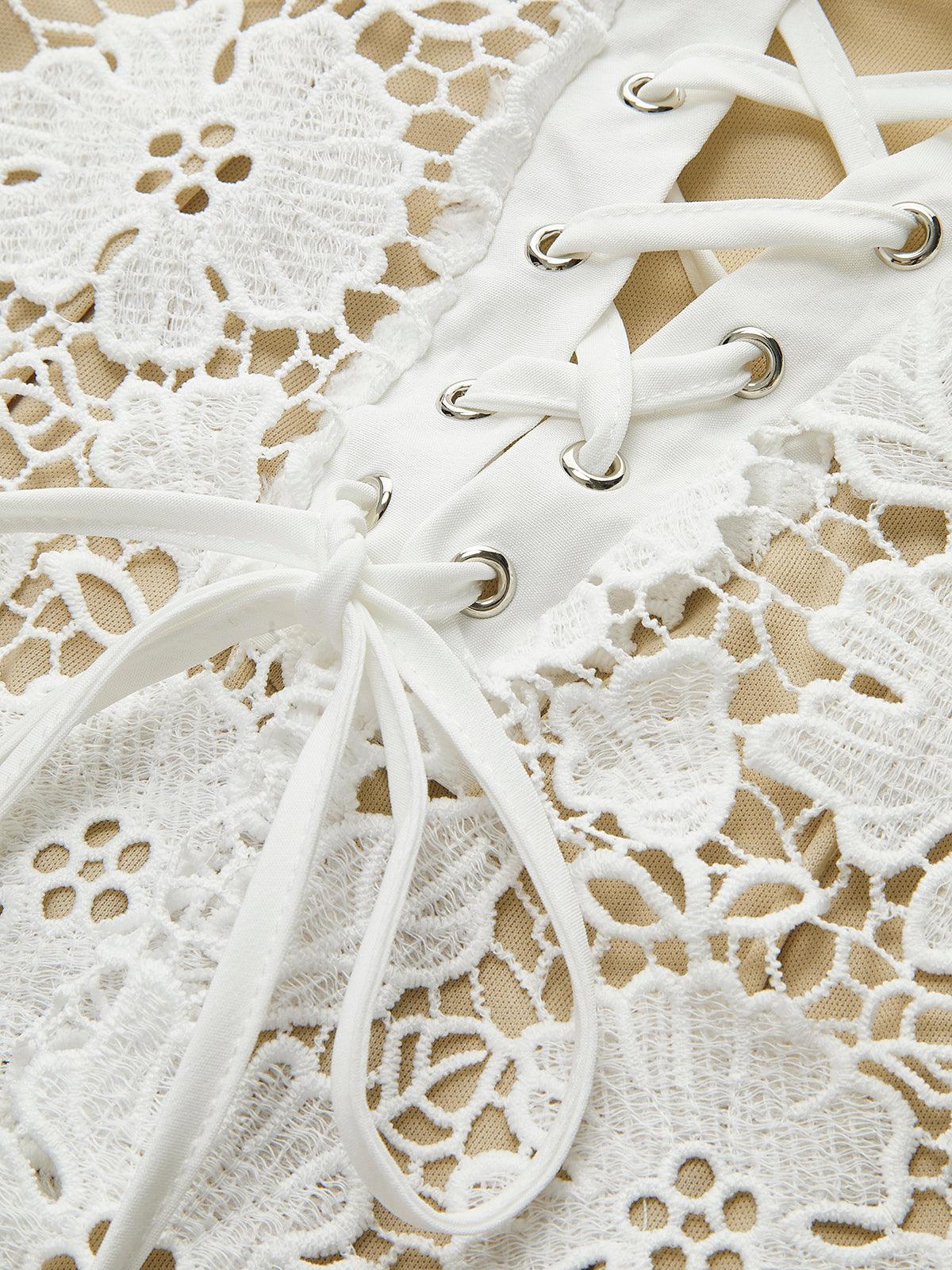 Dantel Detaylı Askılı Beyaz Midi Elbise