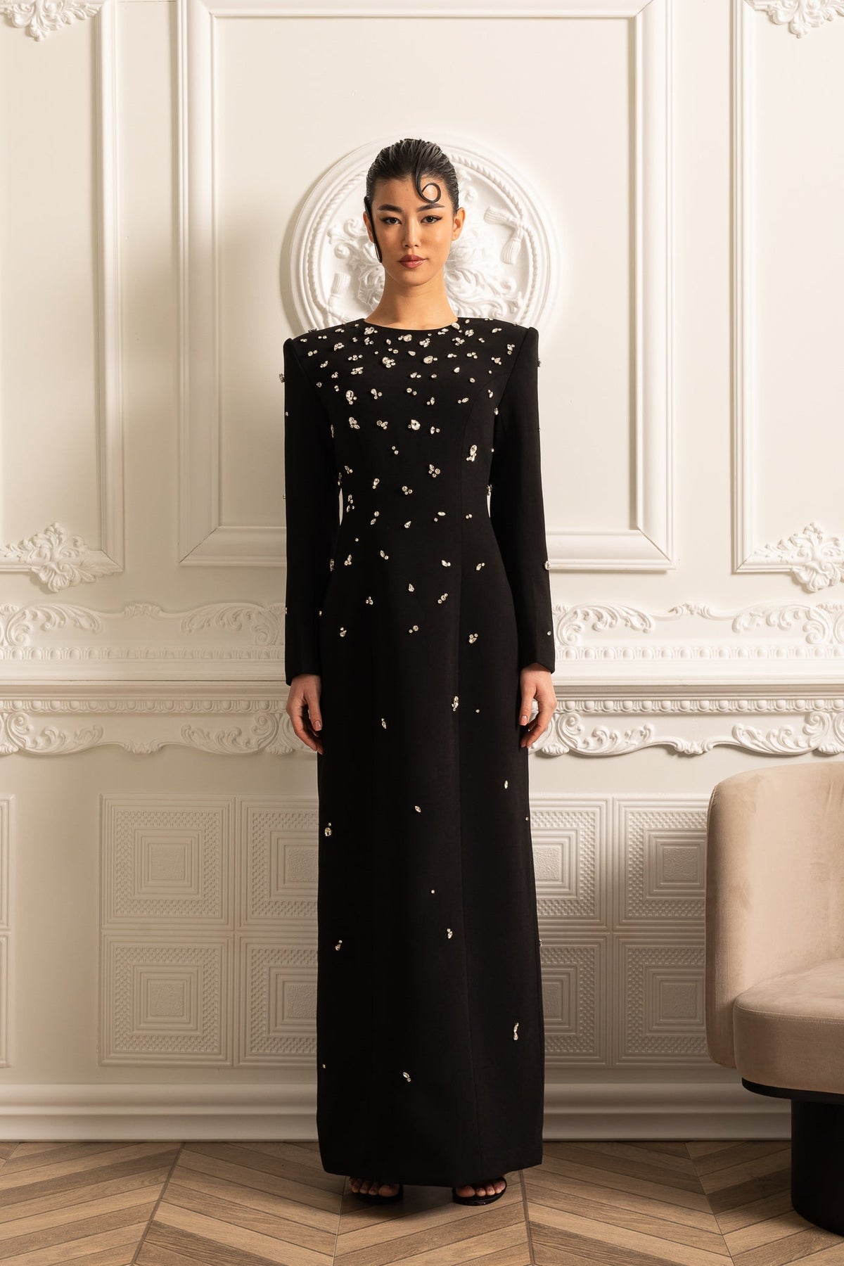Ürün Başlığı: Siyah Şık Uzun Elbise - Işıltılı Kristal İşlemeli