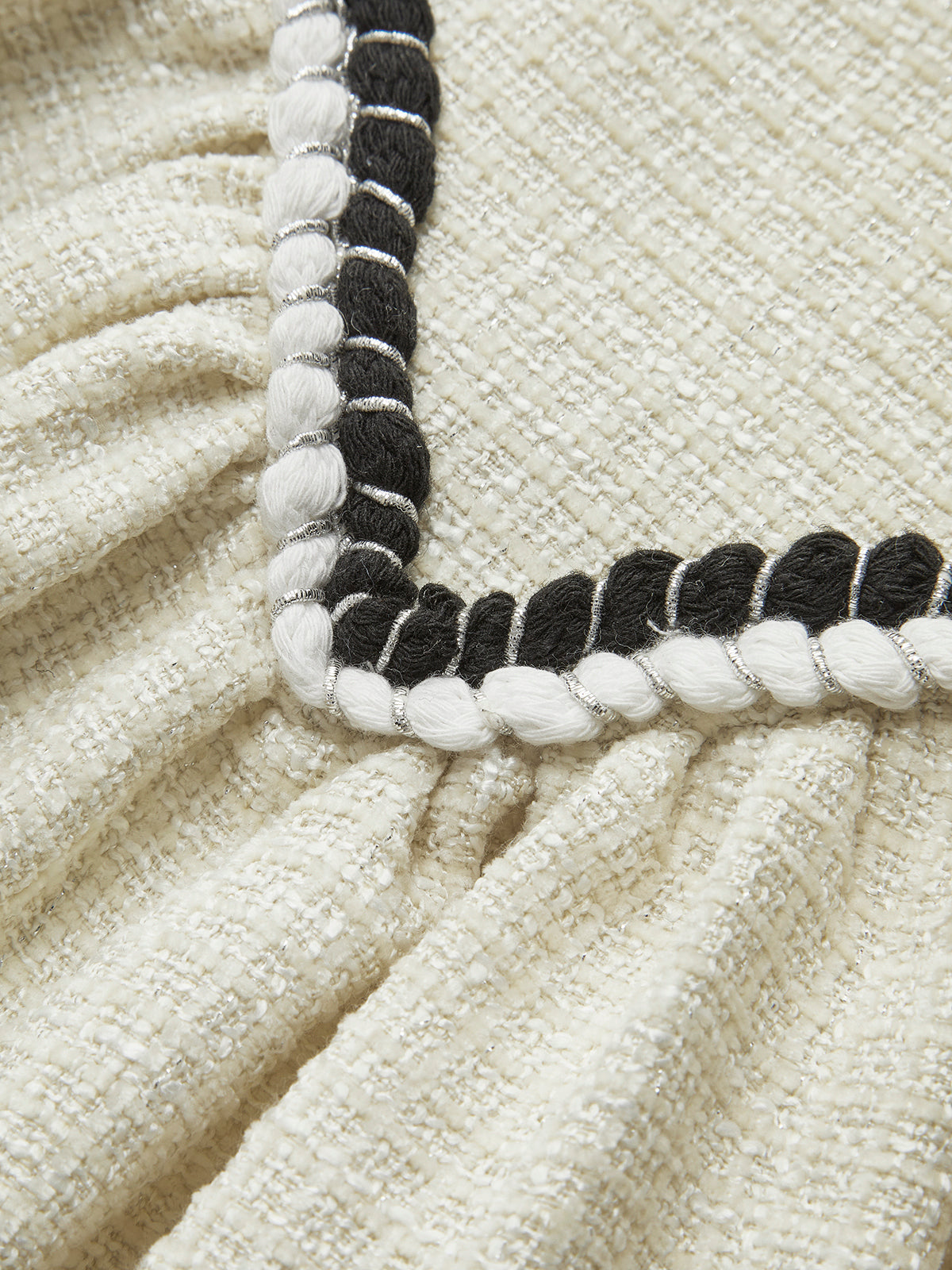 Kontrast Bağlama Detaylı Pliseli Tweed Kısa Elbise – Şık ve Zarif
