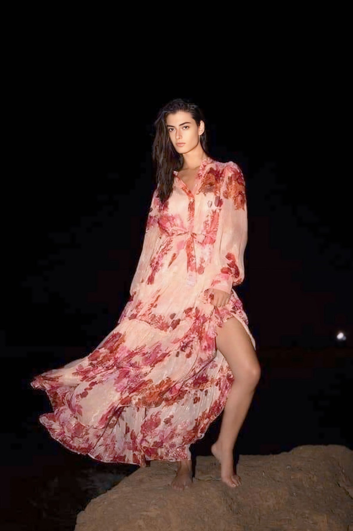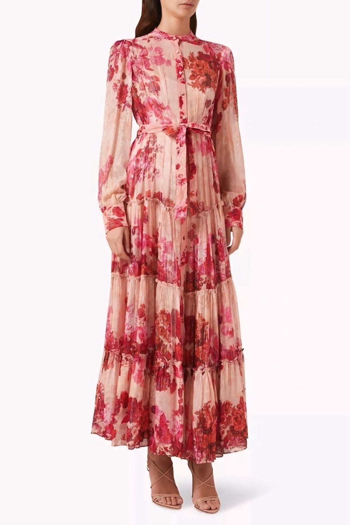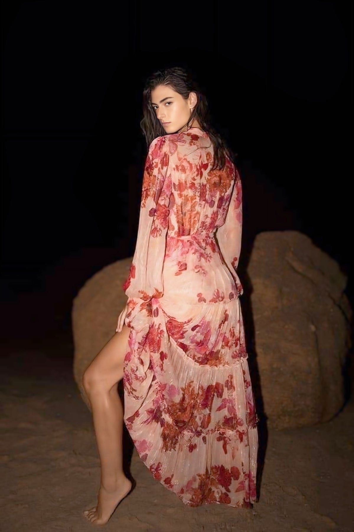 Sylvia Uzun Kollu Çiçekli Maxi Elbise