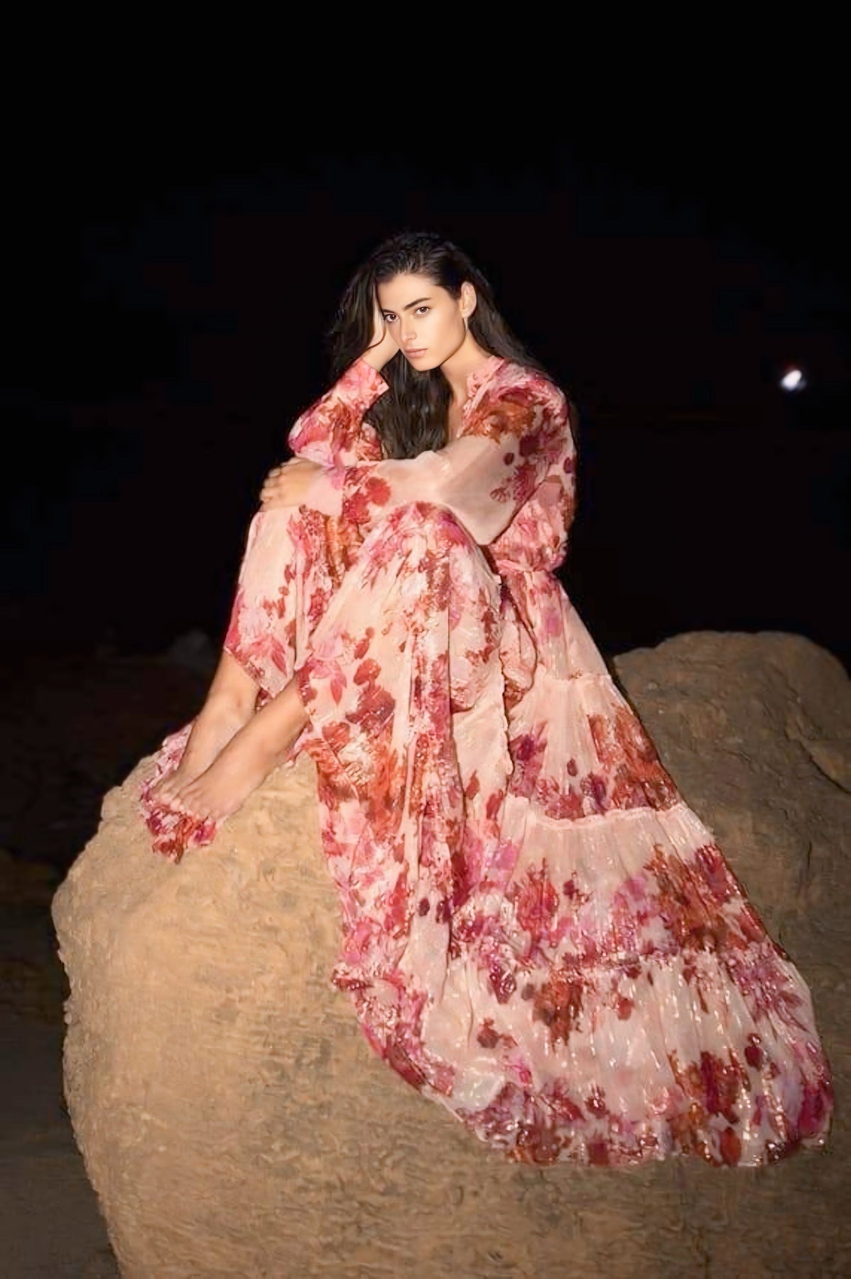Uzun kollu, büyüleyici çiçek desenli ve romantik fırfırlı uzun elbisemizle zamansız zarafeti keşfedin. Dik yaka sofistike bir dokunuş katarken, hafif şifon kumaş zarif bir silüet için güzelce akıyor. Normal kesimi ve düğmeli açıklığıyla bu elbise, klasik tarzı ve zarif konforu yansıtıyor.