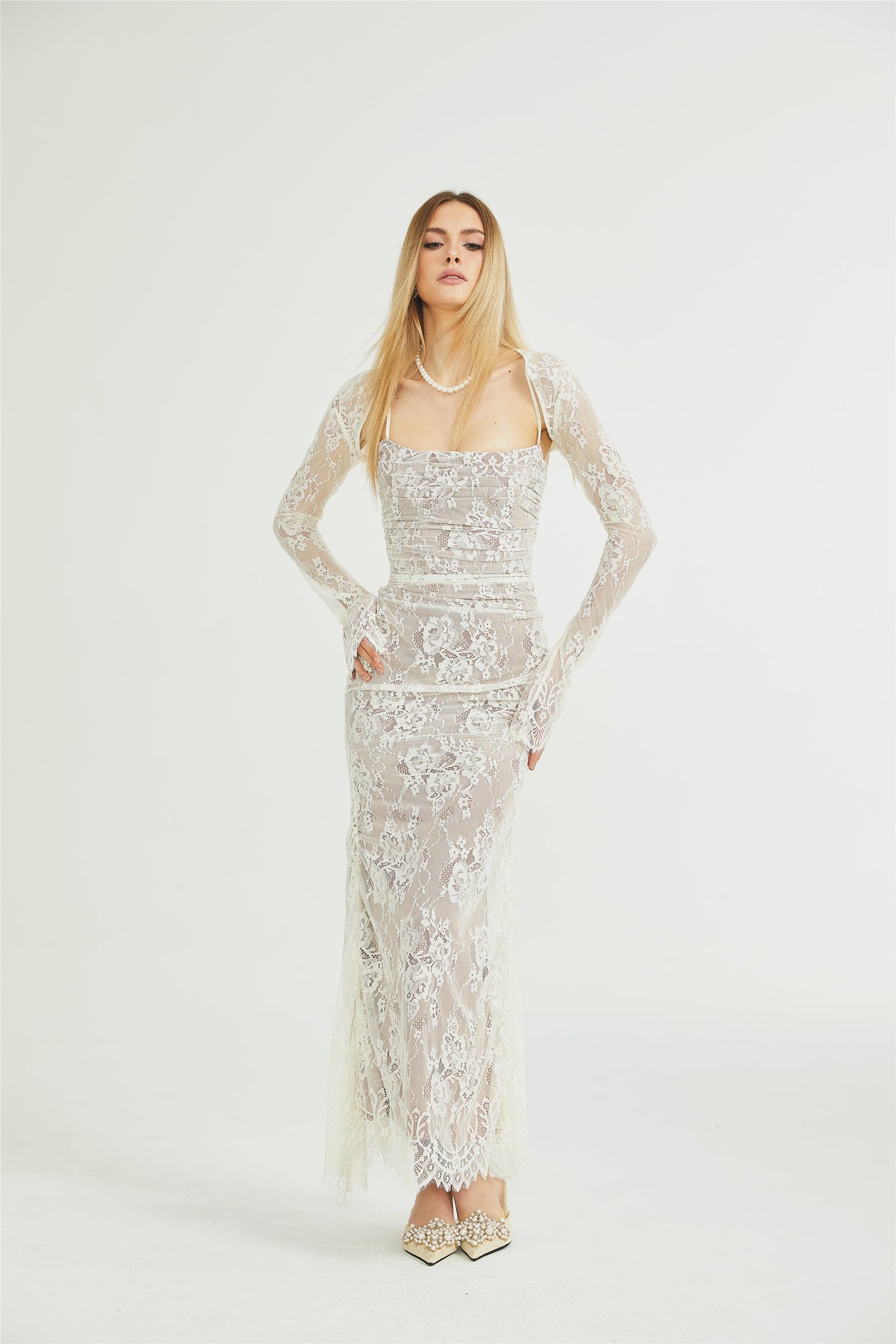 Valérie çiçekli dantel örgü maksi elbise