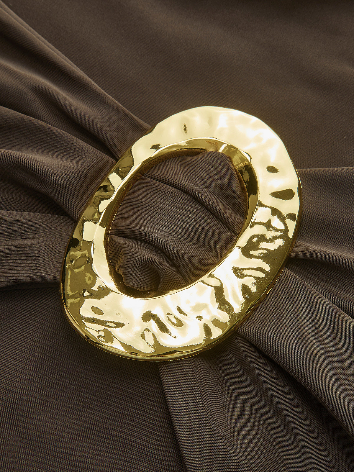 Drapeli Etekli Oval Halka Detaylı Bandeau Bikini Takımı