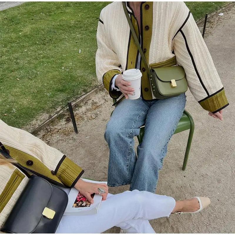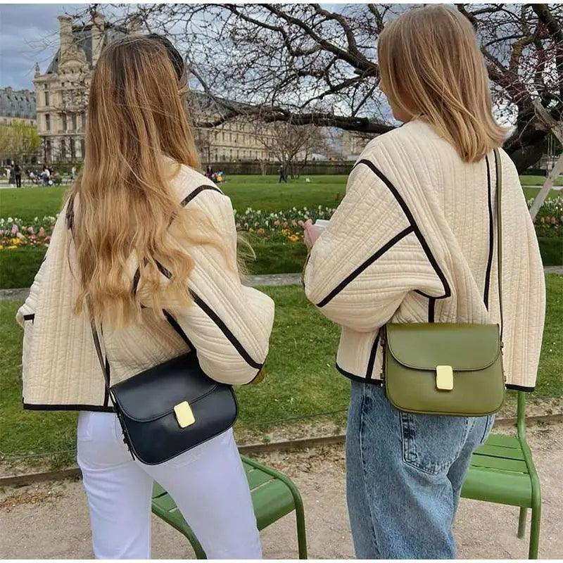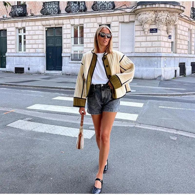 Modern bir estetikle tasarlanan bu ceket, yapısını tanımlayan cesur siyah biye ile vurgulanan fildişi ve haki tonlarının çarpıcı bir kombinasyonuna sahiptir. Kapitone dokusu boyut ve sofistike bir katman eklerken, özel olarak tasarlanmış ancak rahat kesim hem stil hem de rahatlık sağlar. Ceket, düğmeli ön kısım, iki fonksiyonel cep ve kontrast manşetlerle detaylandırılmıştır. Geçiş havaları için mükemmel olan bu ceket, gösterişli bir görünüm için denim veya özel parçalarla güzel bir şekilde eşleşir.