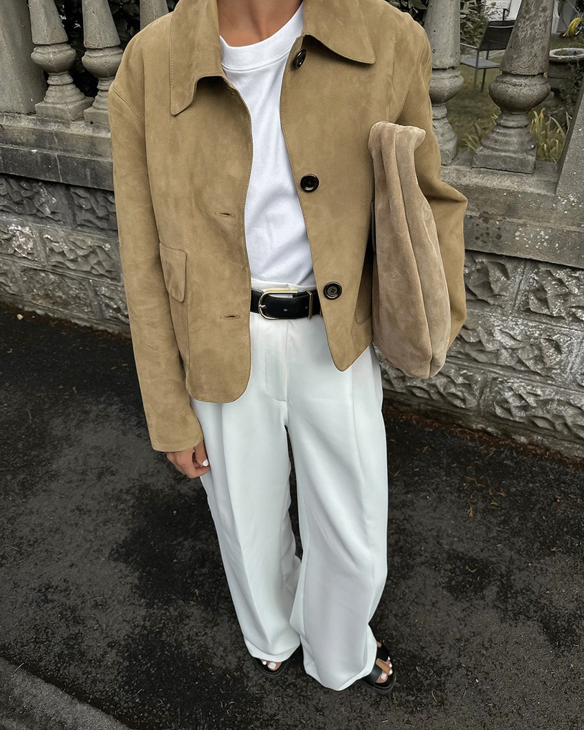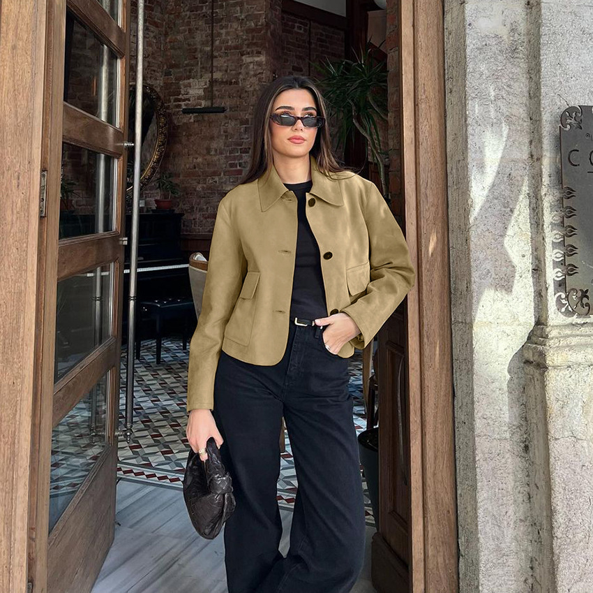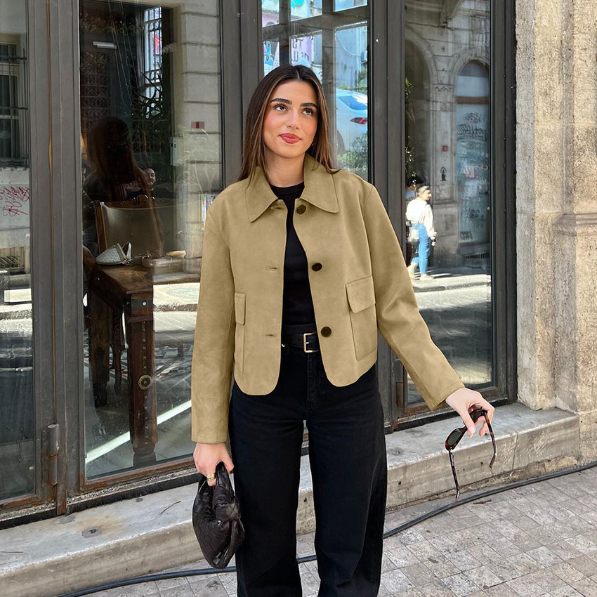 Rosea Süet Görünümlü Ceket, zahmetsiz şıklık için stil sahibi ve sürdürülebilir bir seçimdir. Yumuşak süet dokusu ve çok yönlü tasarımıyla, katmanlı kombinler oluşturmak ve günlük tarzınızı bir üst seviyeye taşımak için mükemmeldir.