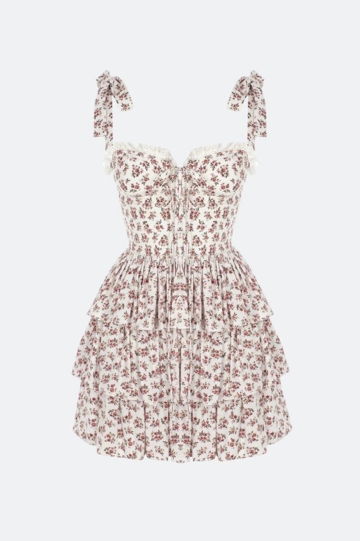 Aleth Baskılı Papyonlu Katlı Mini Elbise
