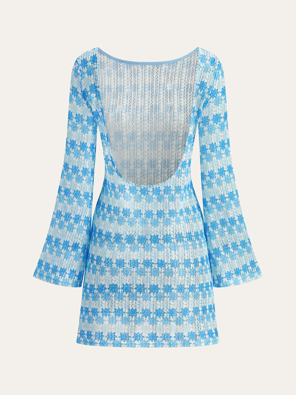 Sırtı Açık Tığ İşi Elbise Geniş Kollu