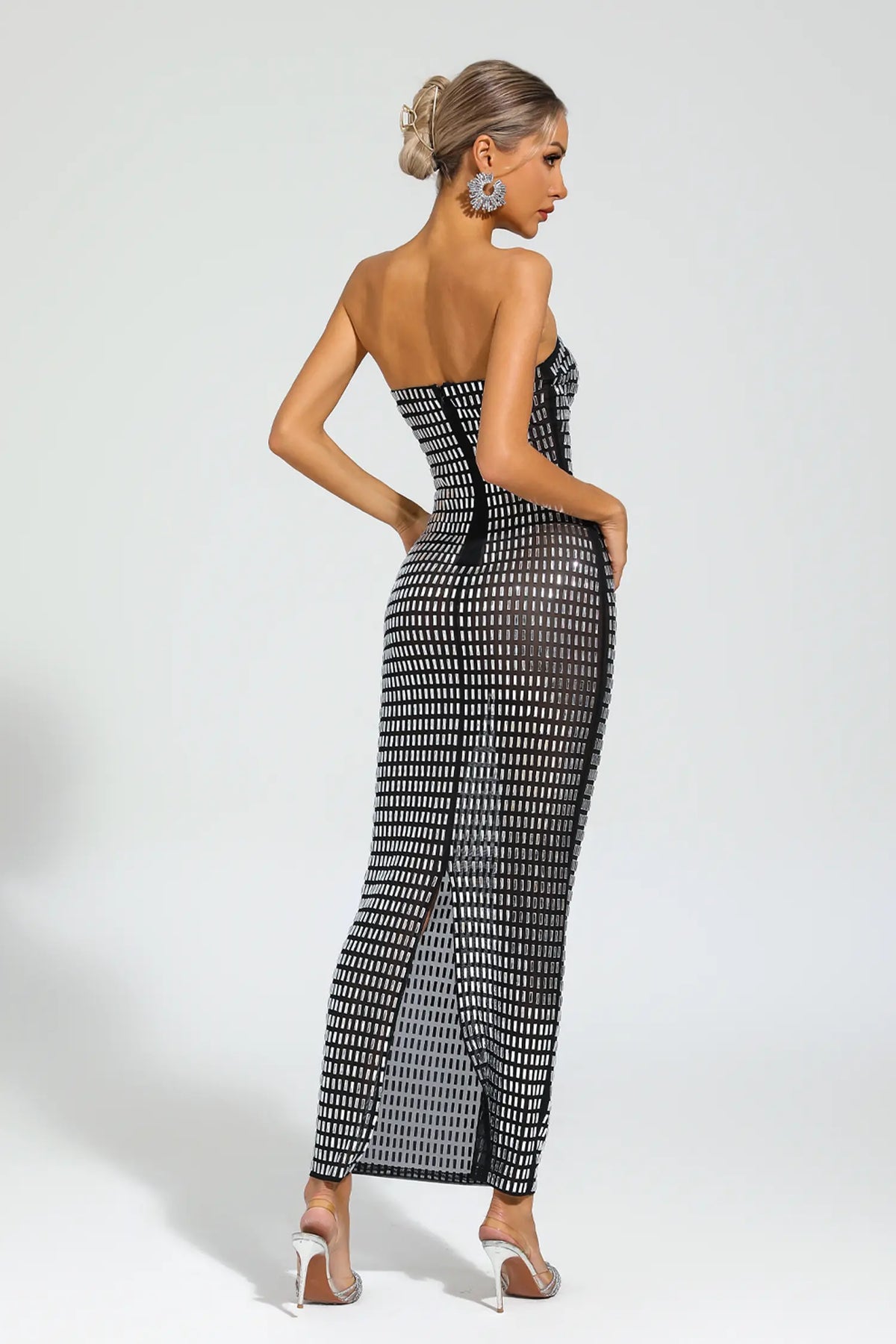 Boris Siyah Pırlanta Düşük Omuz Maxi Elbise