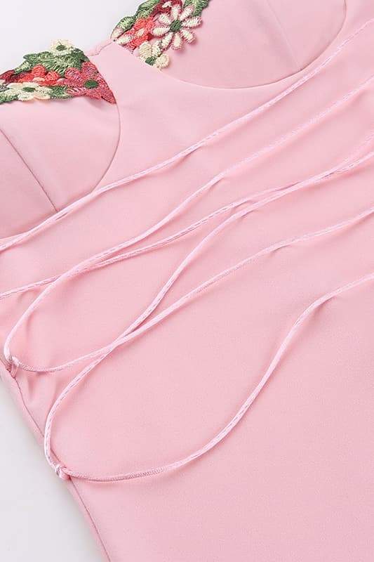 Brenda Nakışlı Çiçek Bağcıklı Midi Elbise
