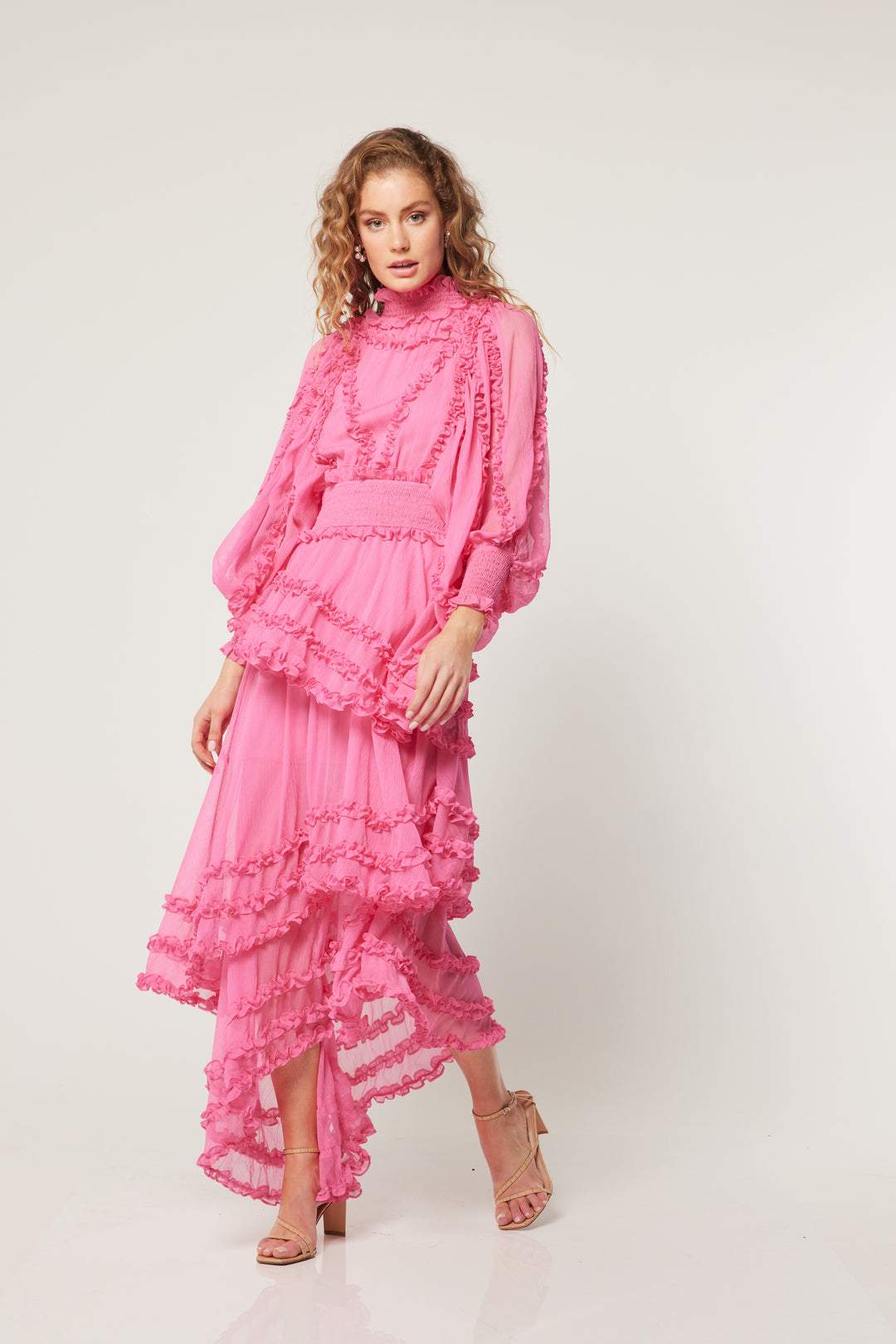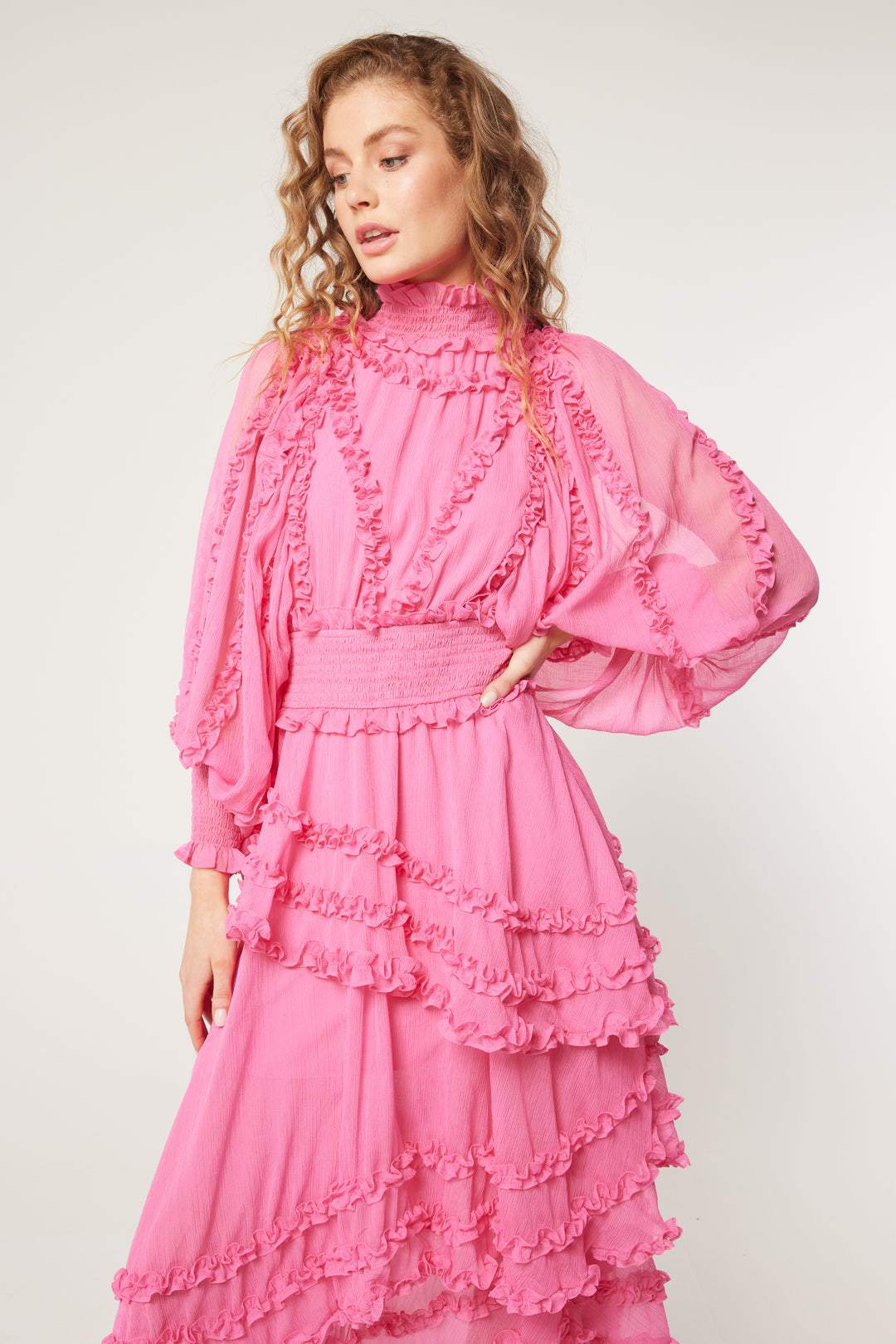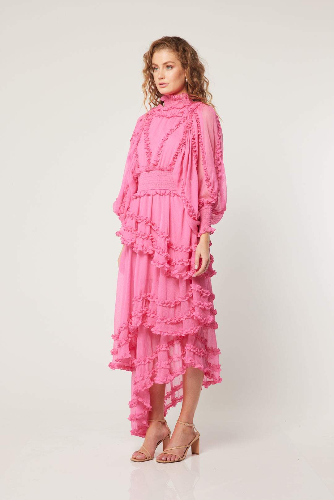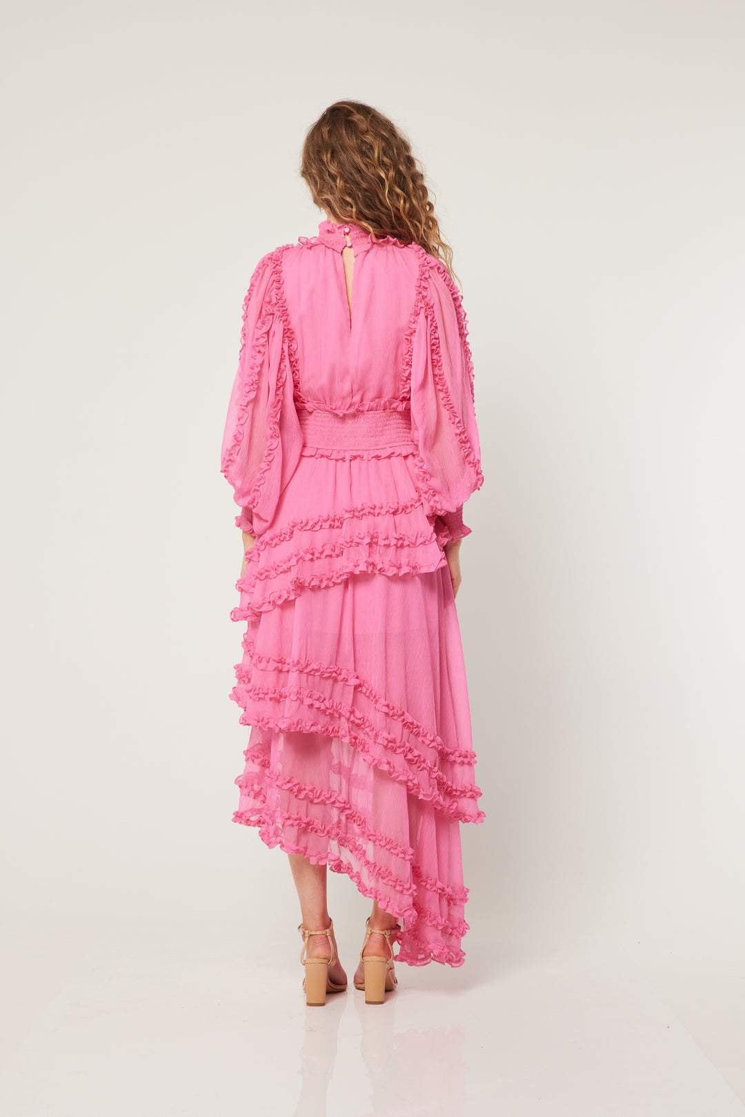 Candida Fırfırlı Büzgülü Asimetri Midi Elbise