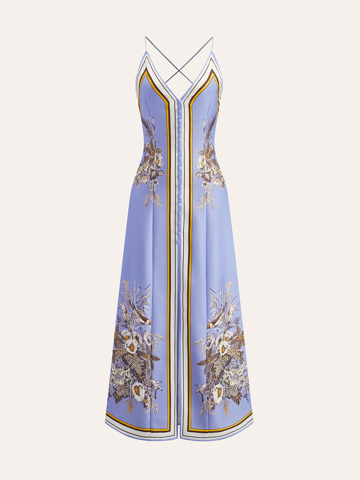 Rahat Çiçek Baskılı Askılı Uzun Elbise