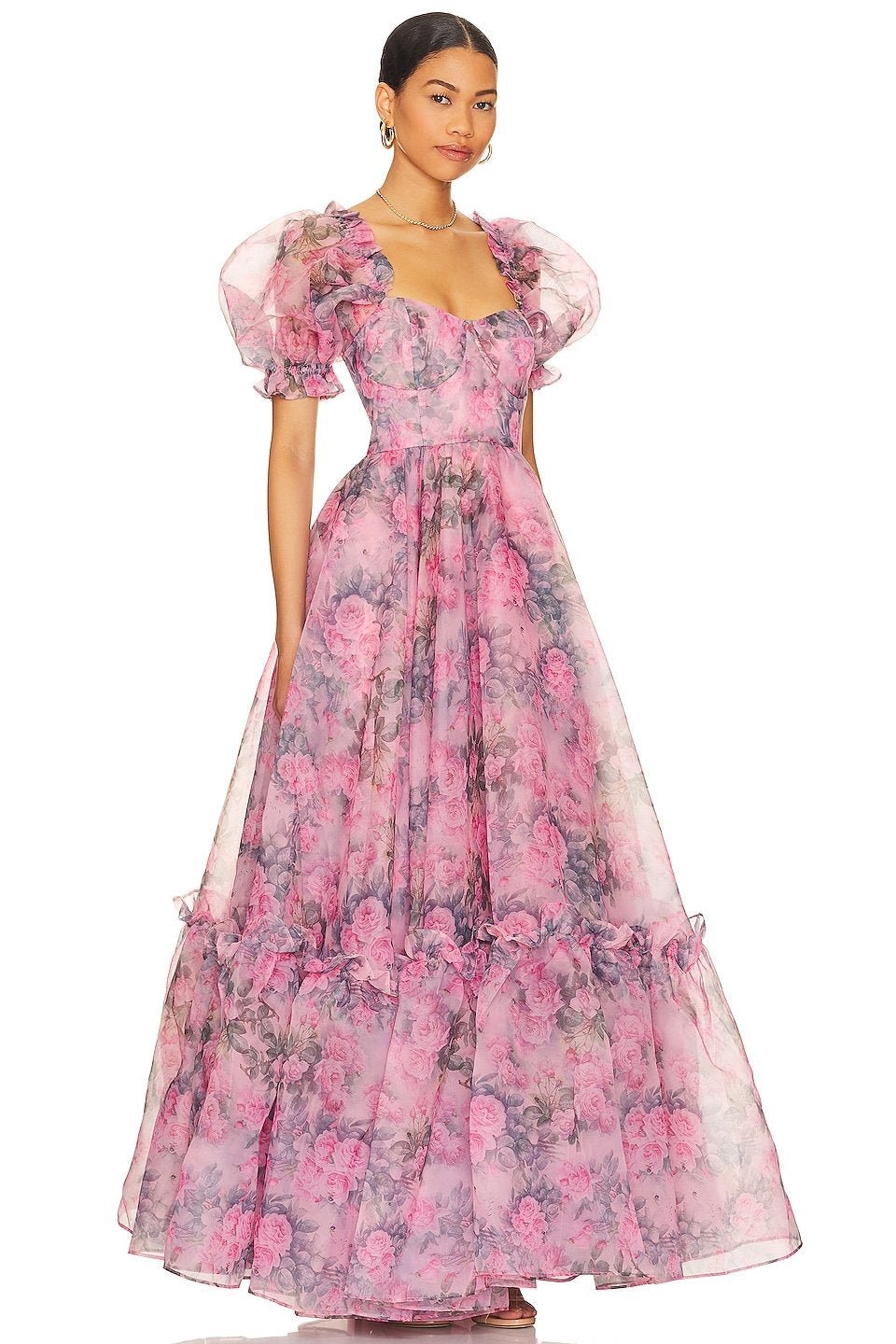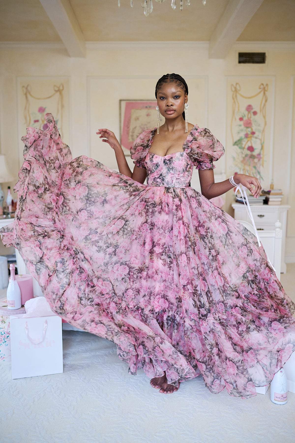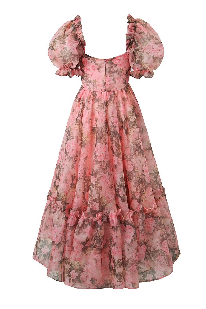 Dolly Baskılı Kalp Fırfırlı Maxi Elbise