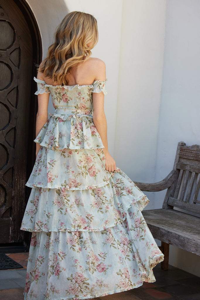 Eliza Baskılı Omuzu Açık Yırtmaçlı Maxi Elbise