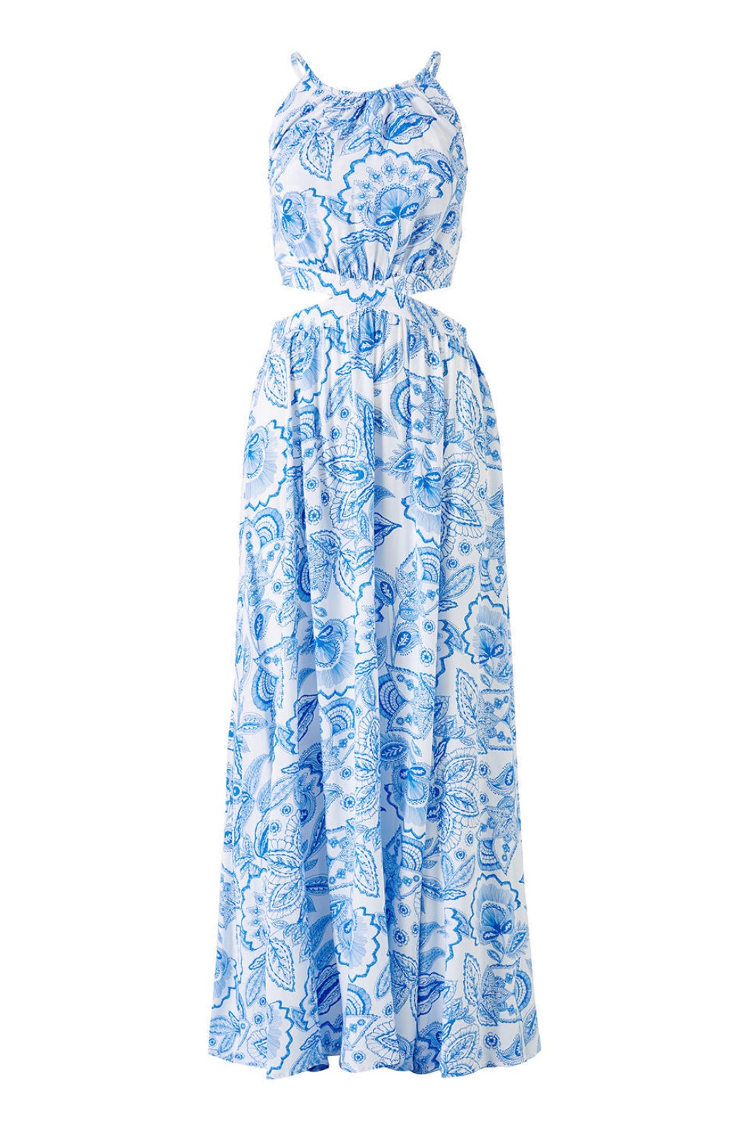 Elva Paisley Baskılı Sırtı Açık Kesik Uzun Elbise