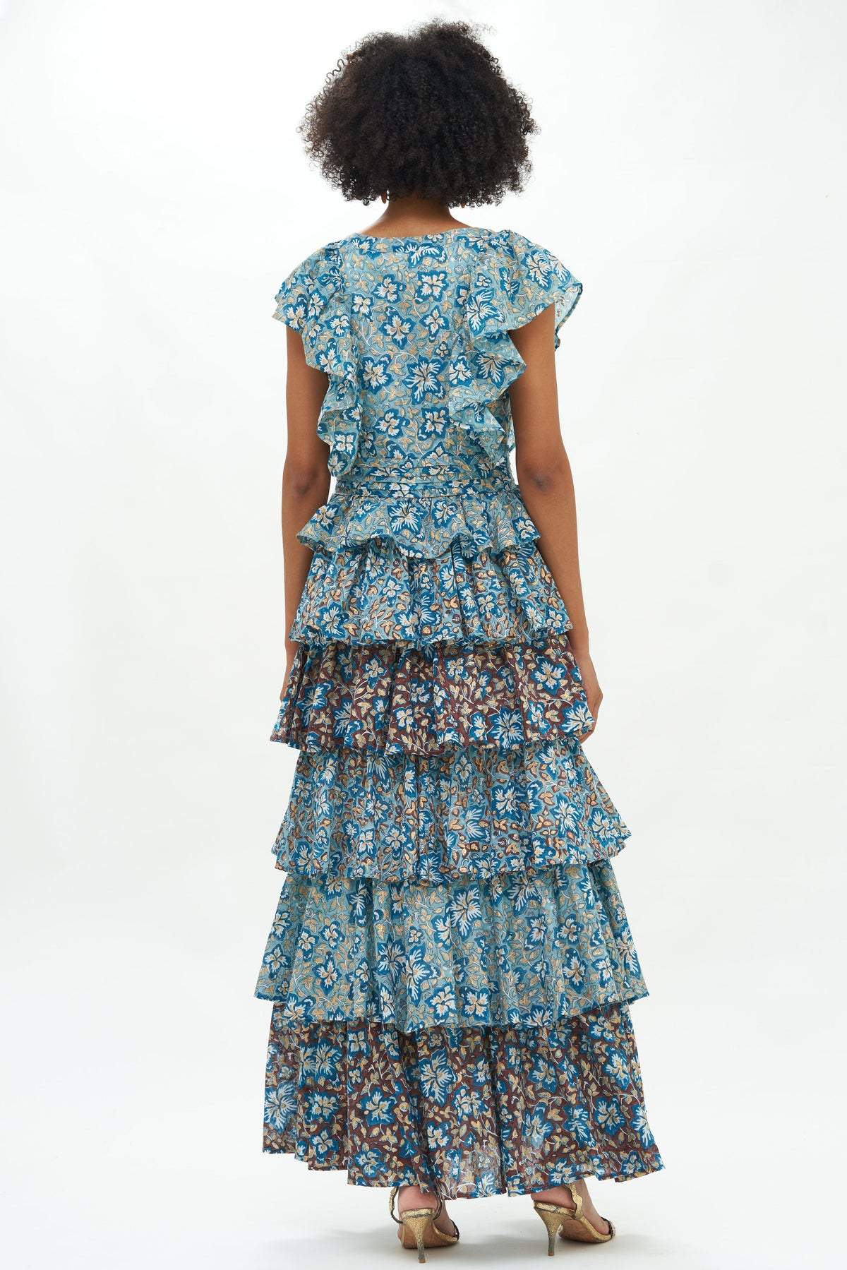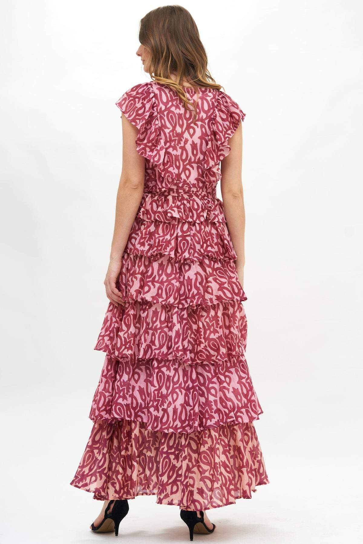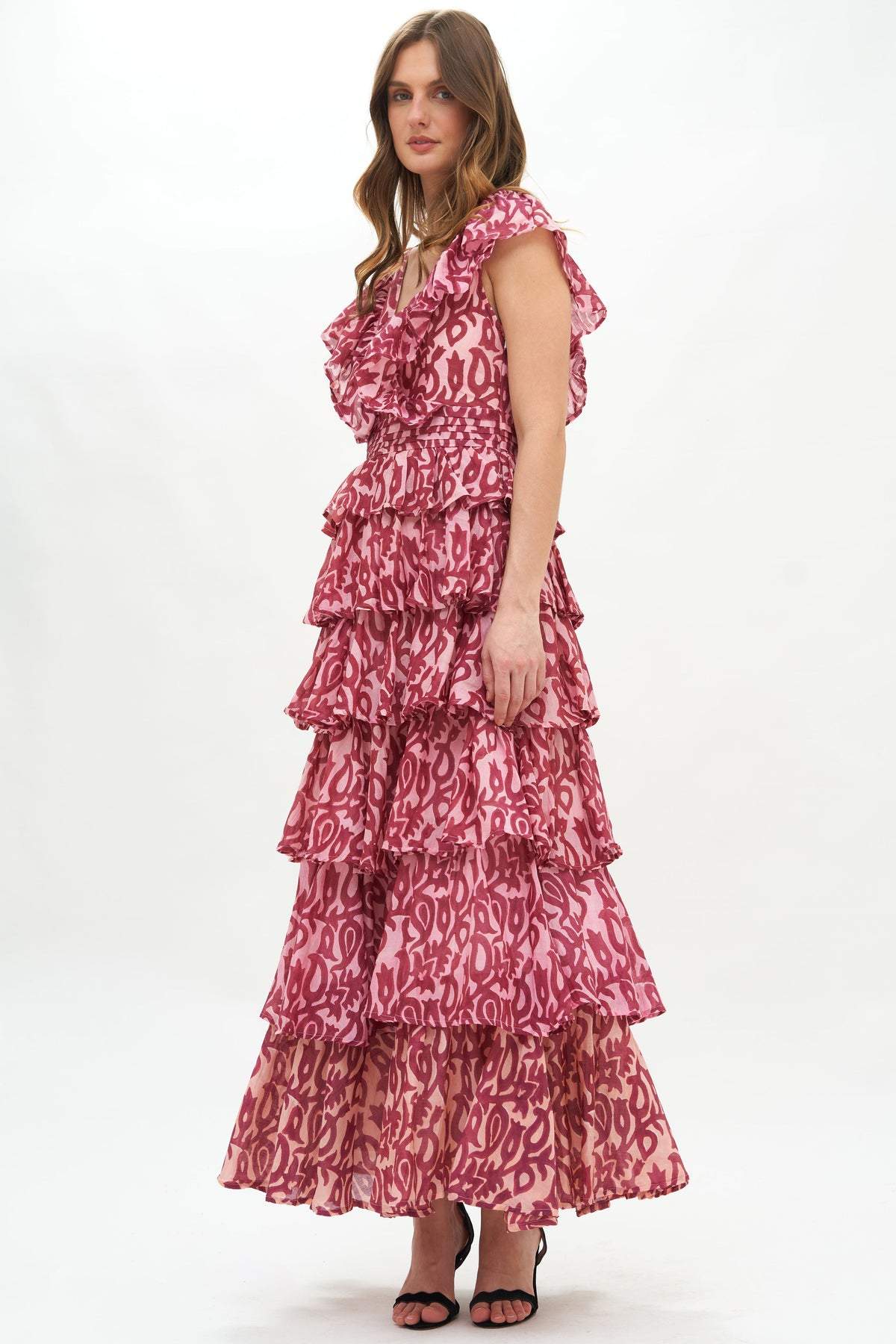 Fran Baskılı Fırfırlı Katlı Maxi Elbise