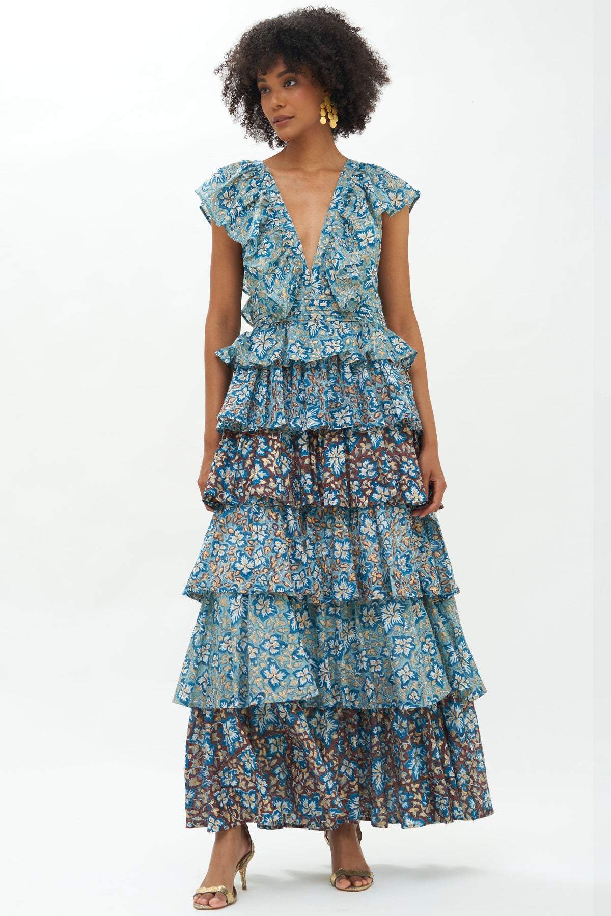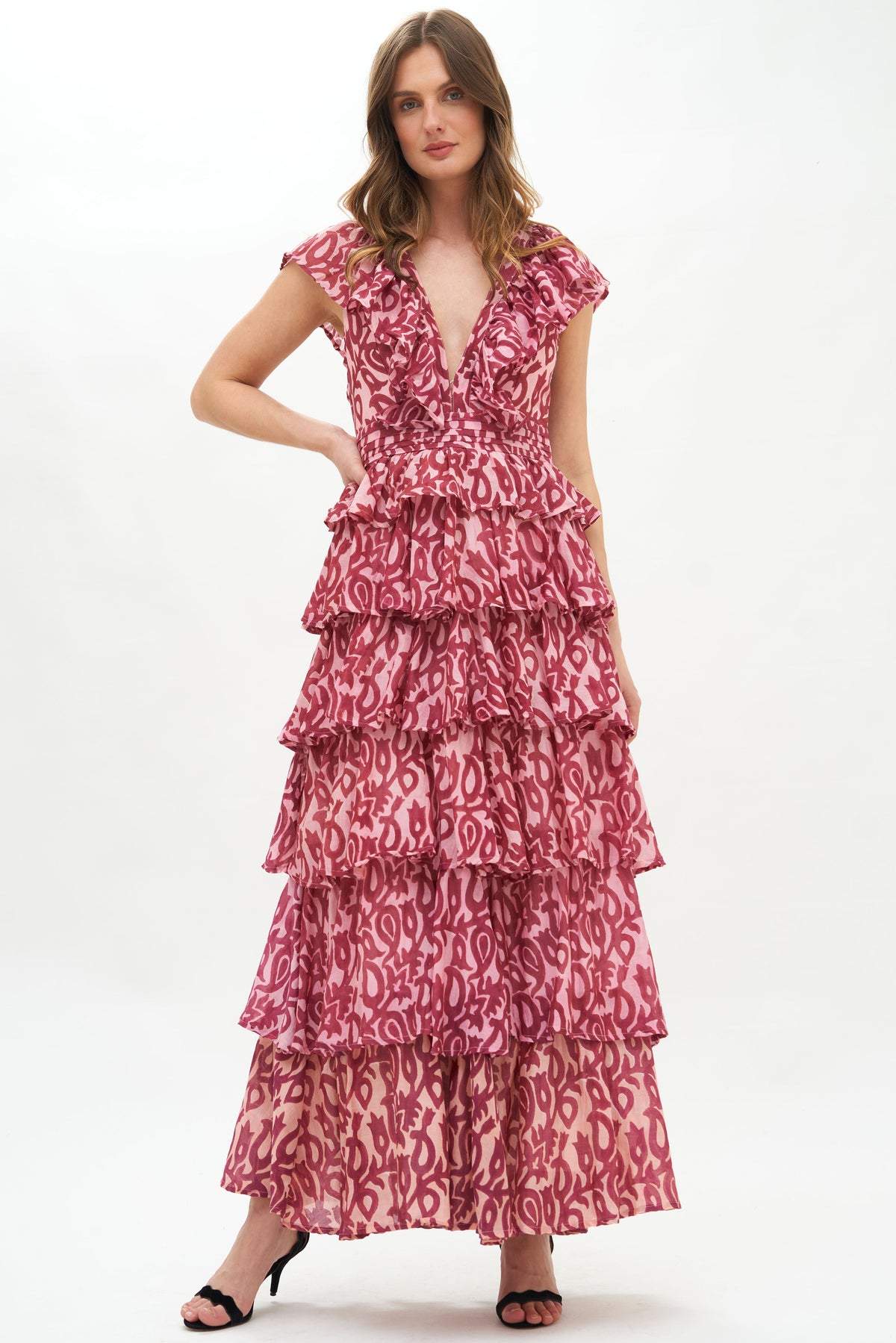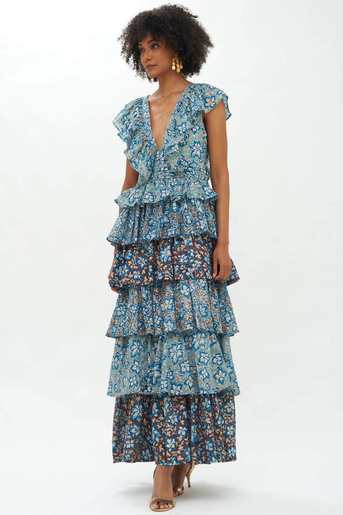 Fran Baskılı Fırfırlı Katlı Maxi Elbise