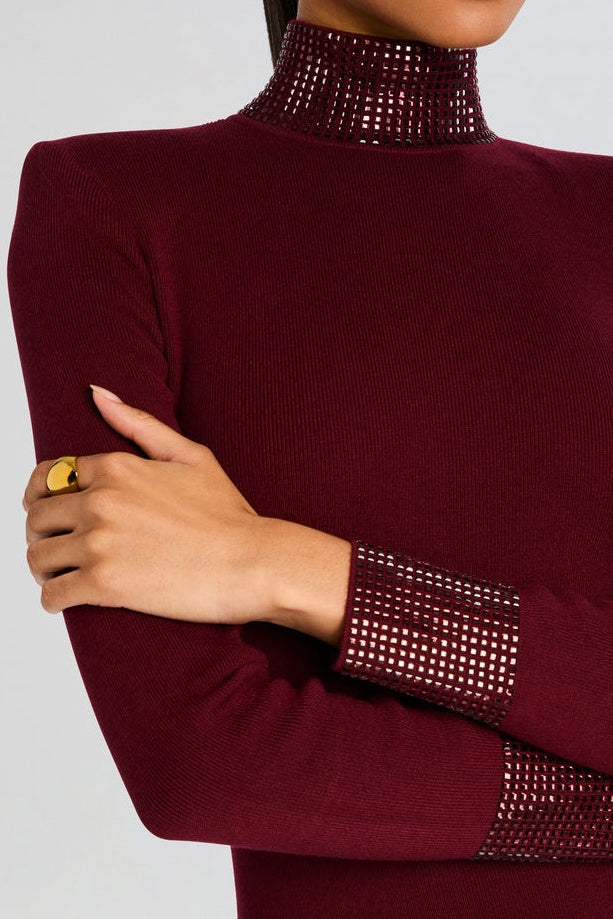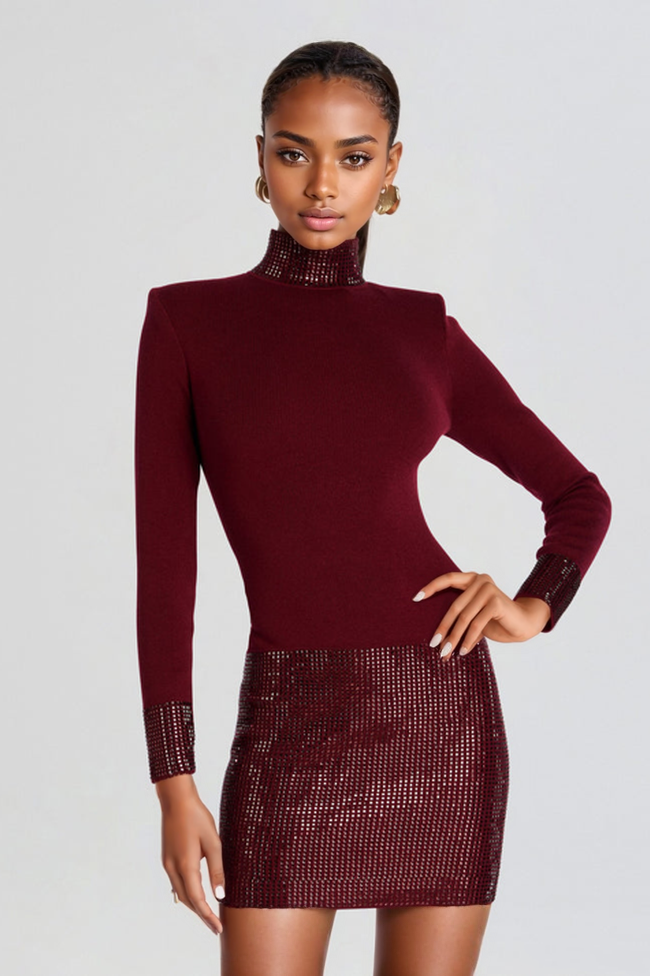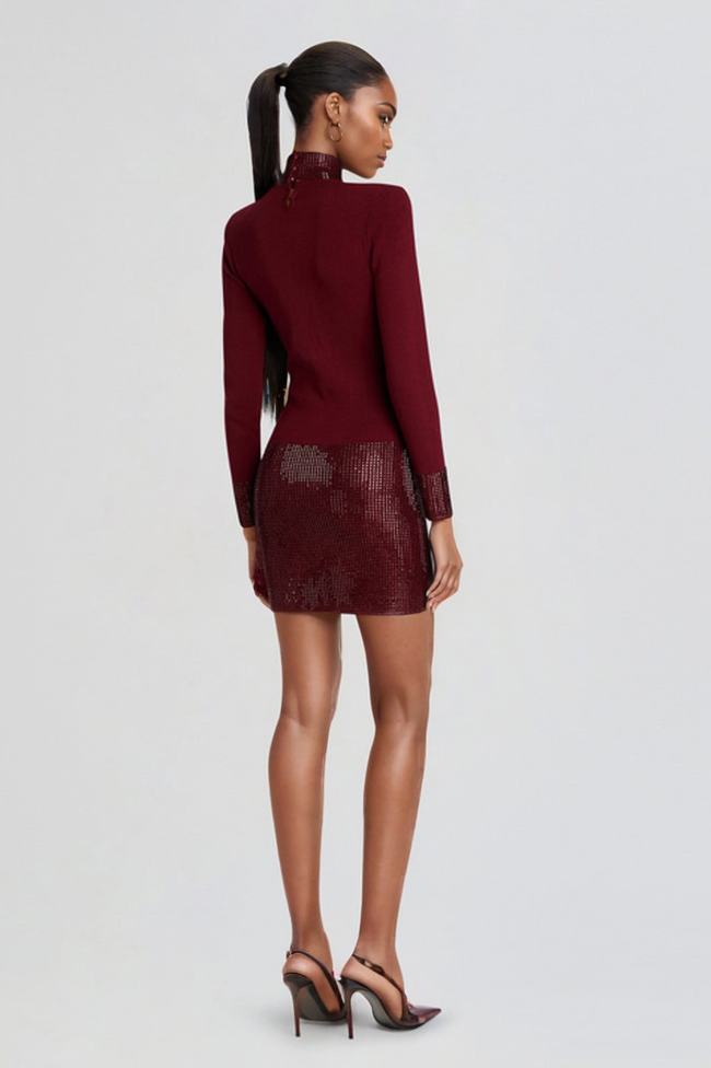 Frances Pırlanta Taşlı Yüksek Yaka Mini Elbise