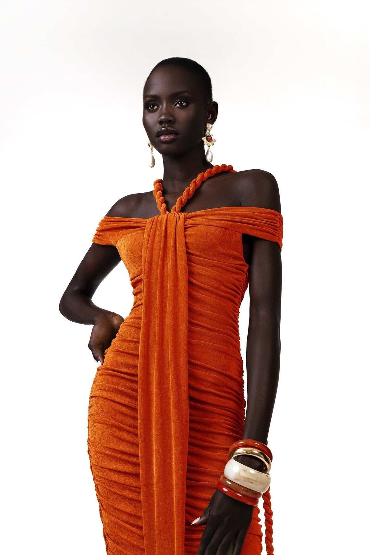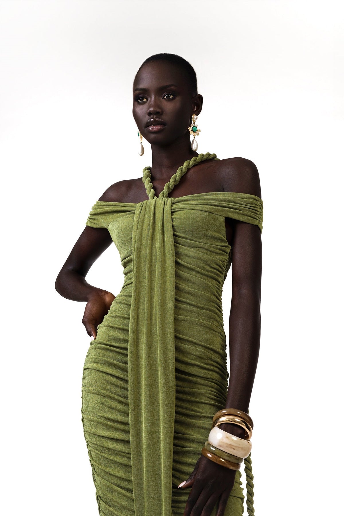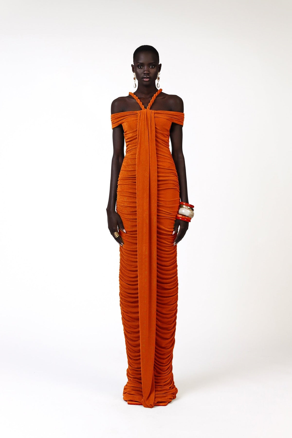 Frederica Halat Kravatlı Boyundan Bağlamalı Maxi Triko Elbise