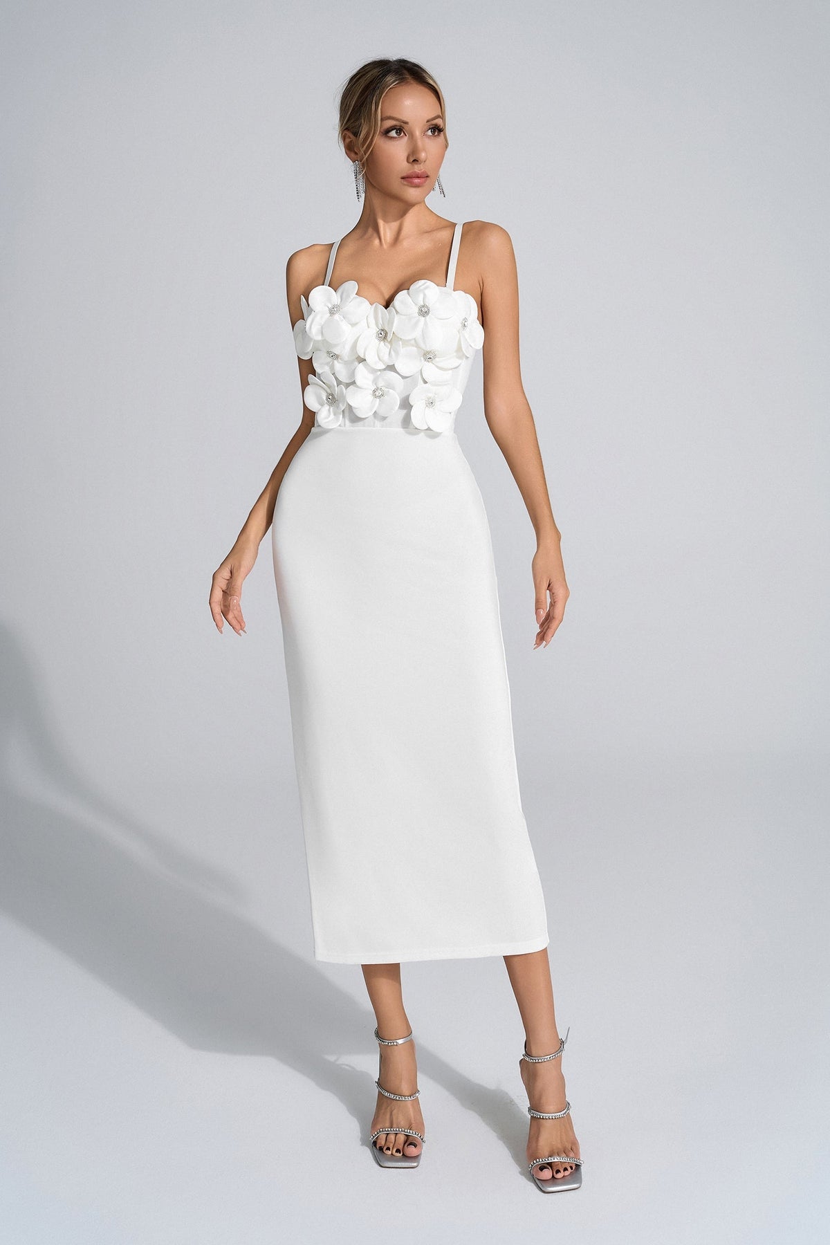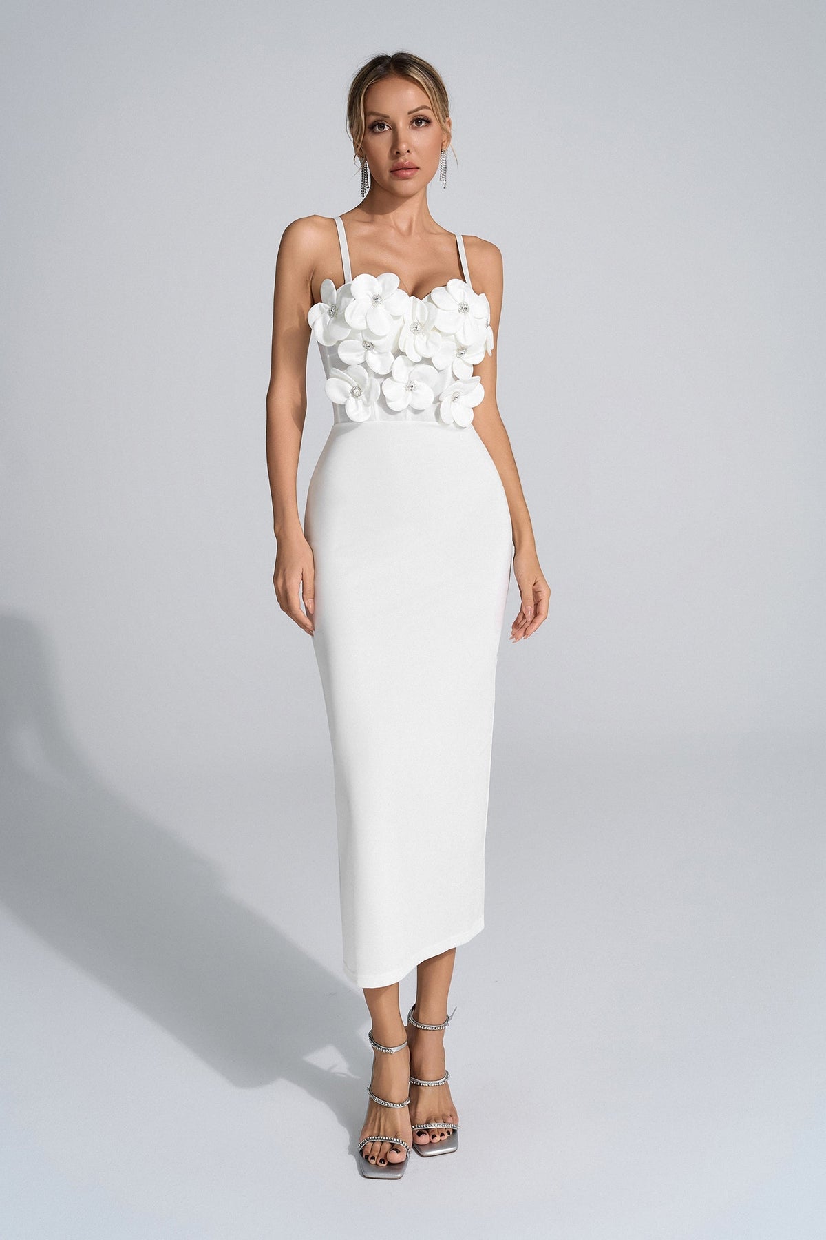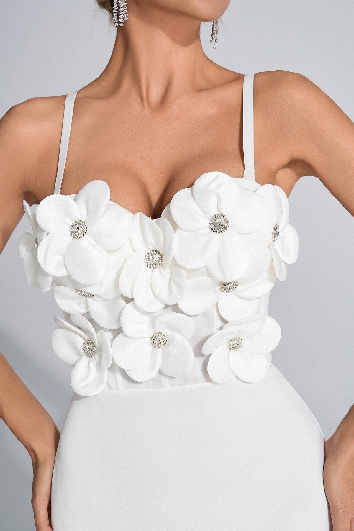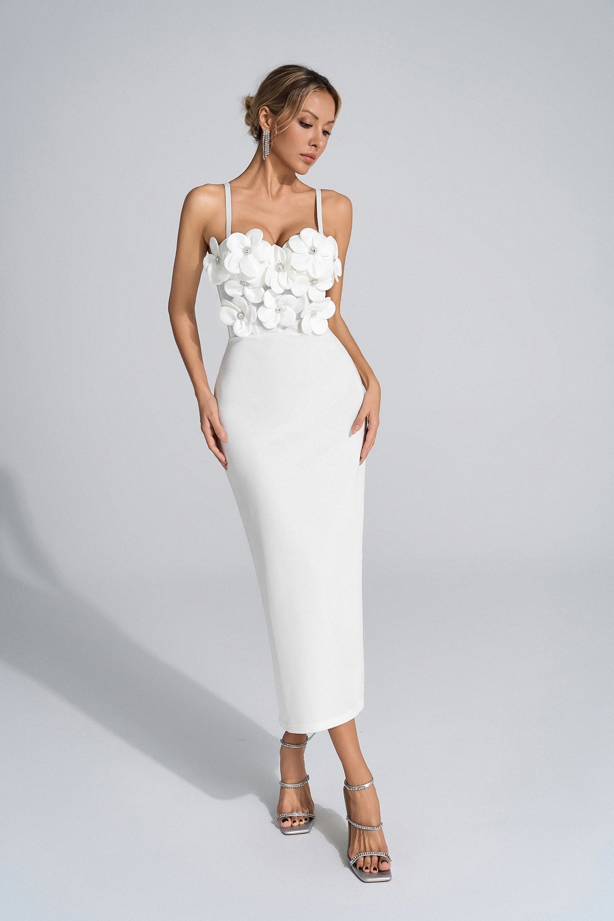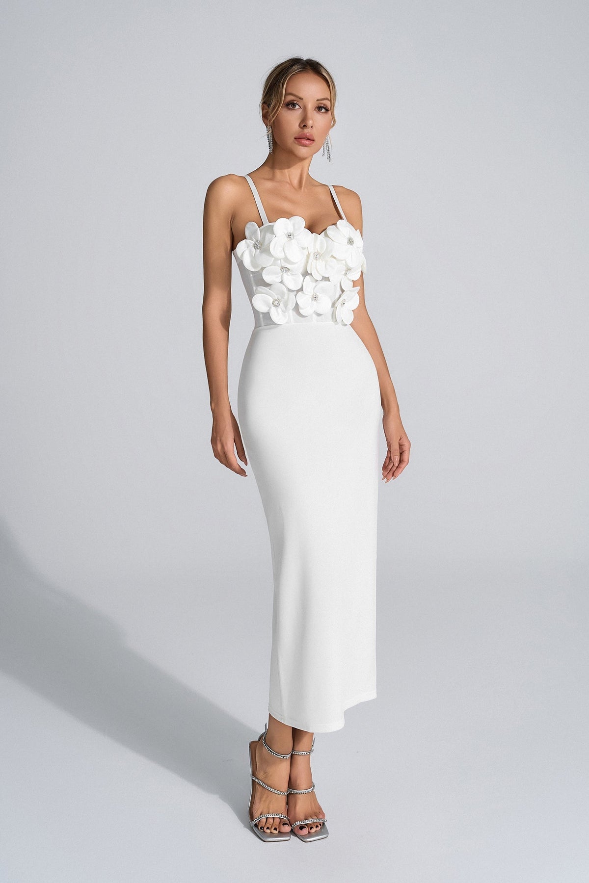 Galilea Beyaz 3D Çiçekli Uzun Elbise