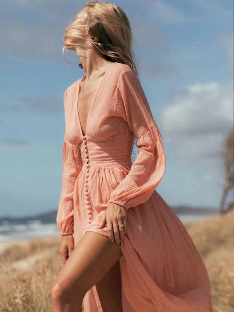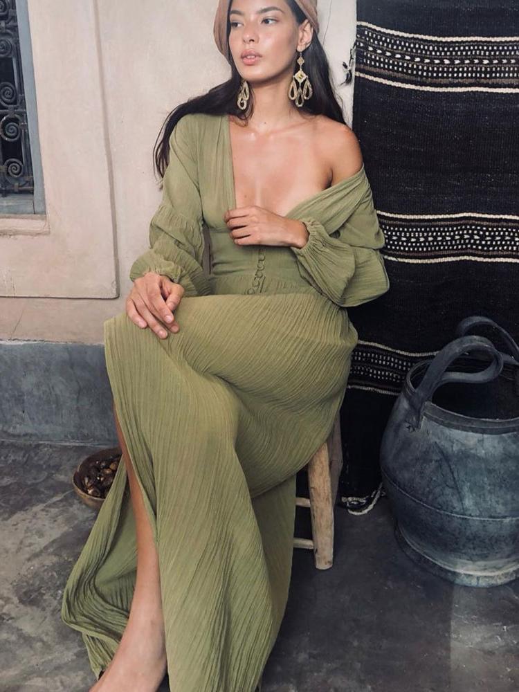 Giselle V Yaka Plisse Maxi Sütçü Elbise