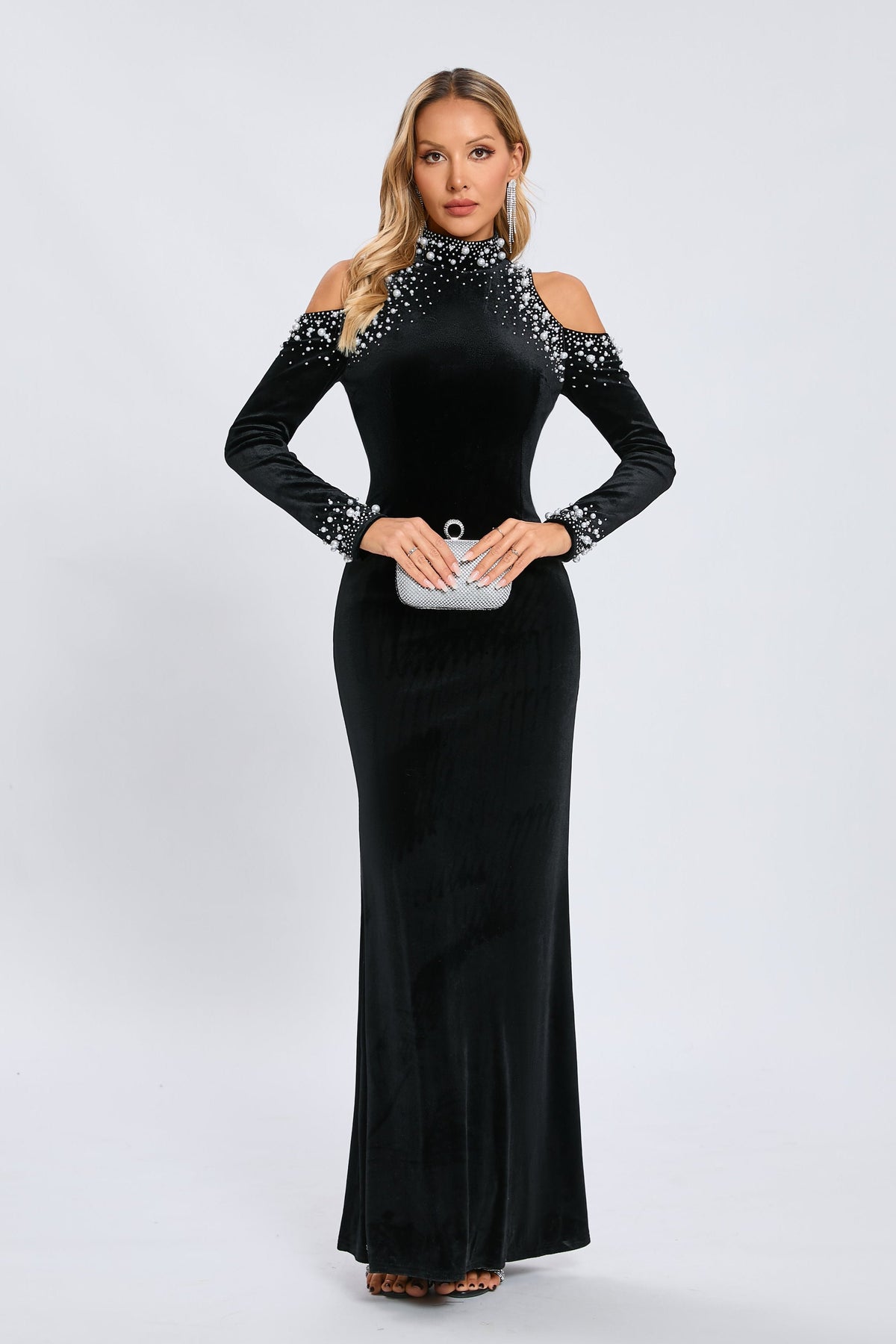 İndigo Midnight İnci Taşlı Maxi Elbise