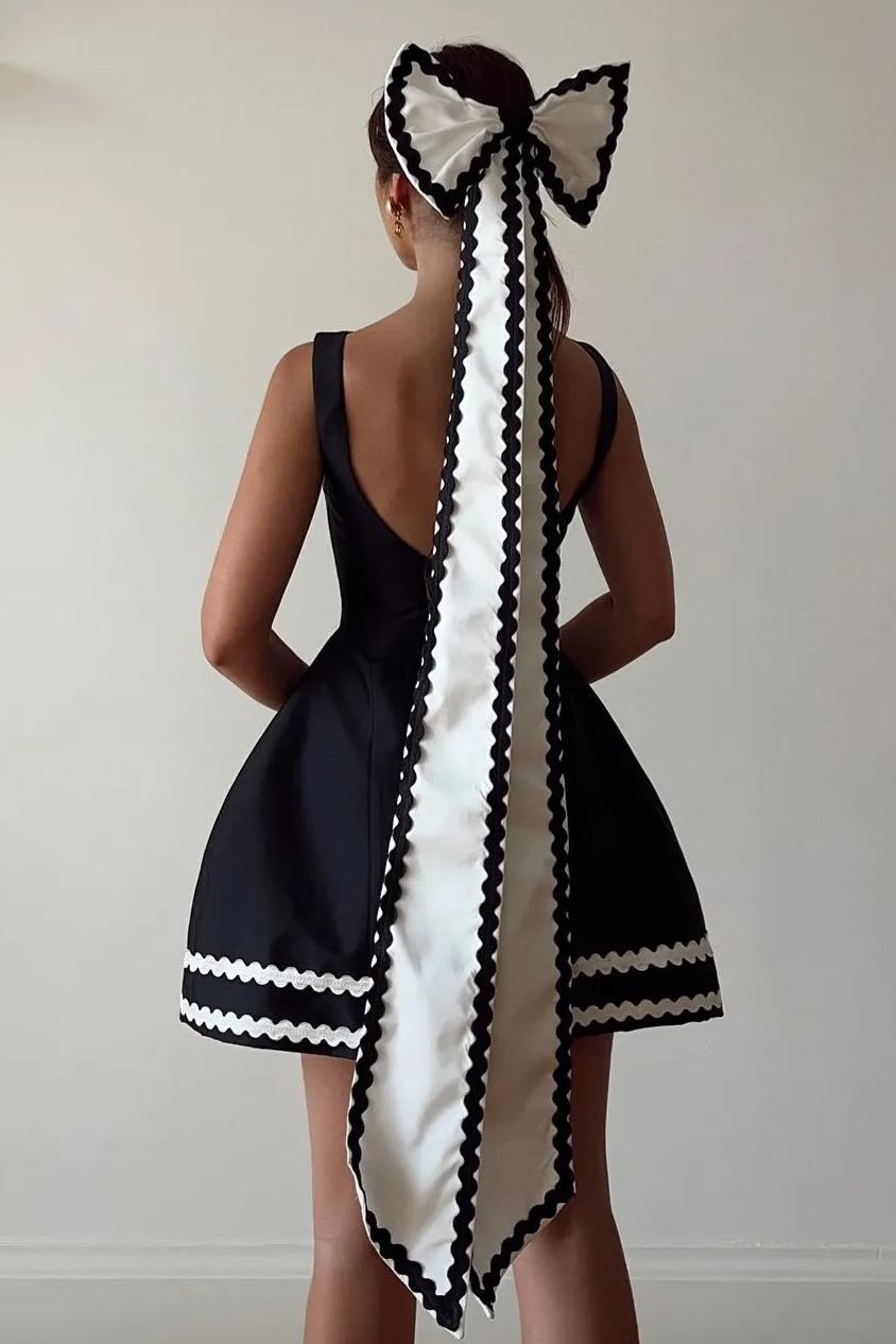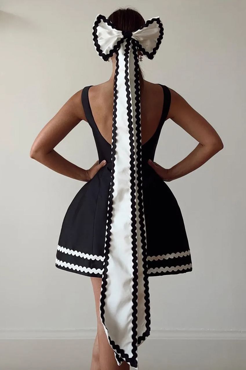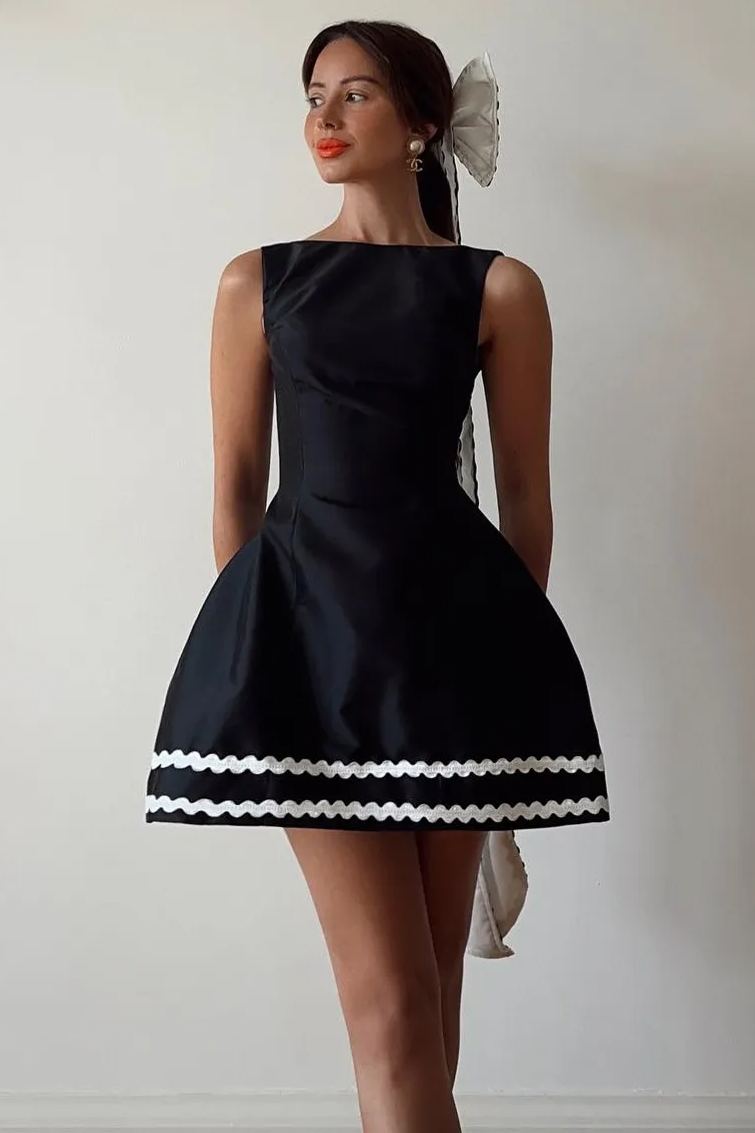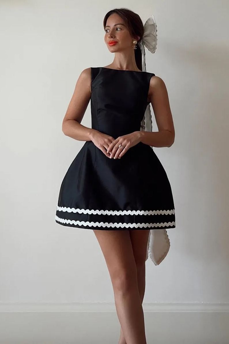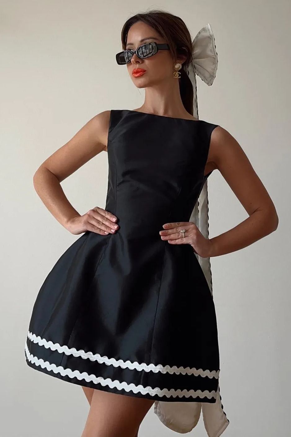 Jacqueline Kayık Yaka Sırtı Açık Mini Saten Elbise