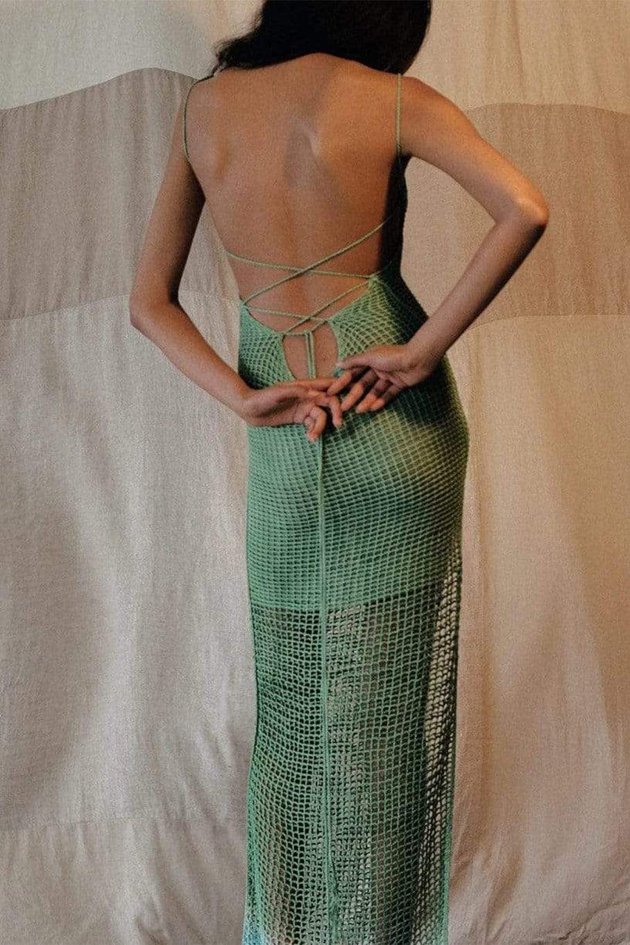 Janet Boyundan Bağlamalı Püskül Tığ İşi Maxi Elbise