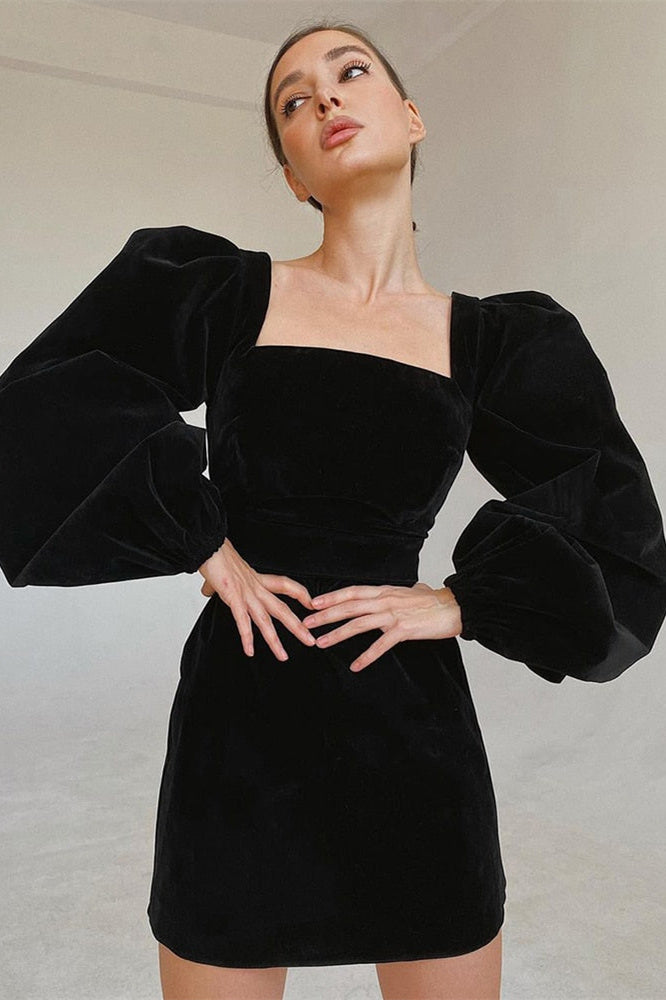Janice Puf Kol Kadife Mini Elbise