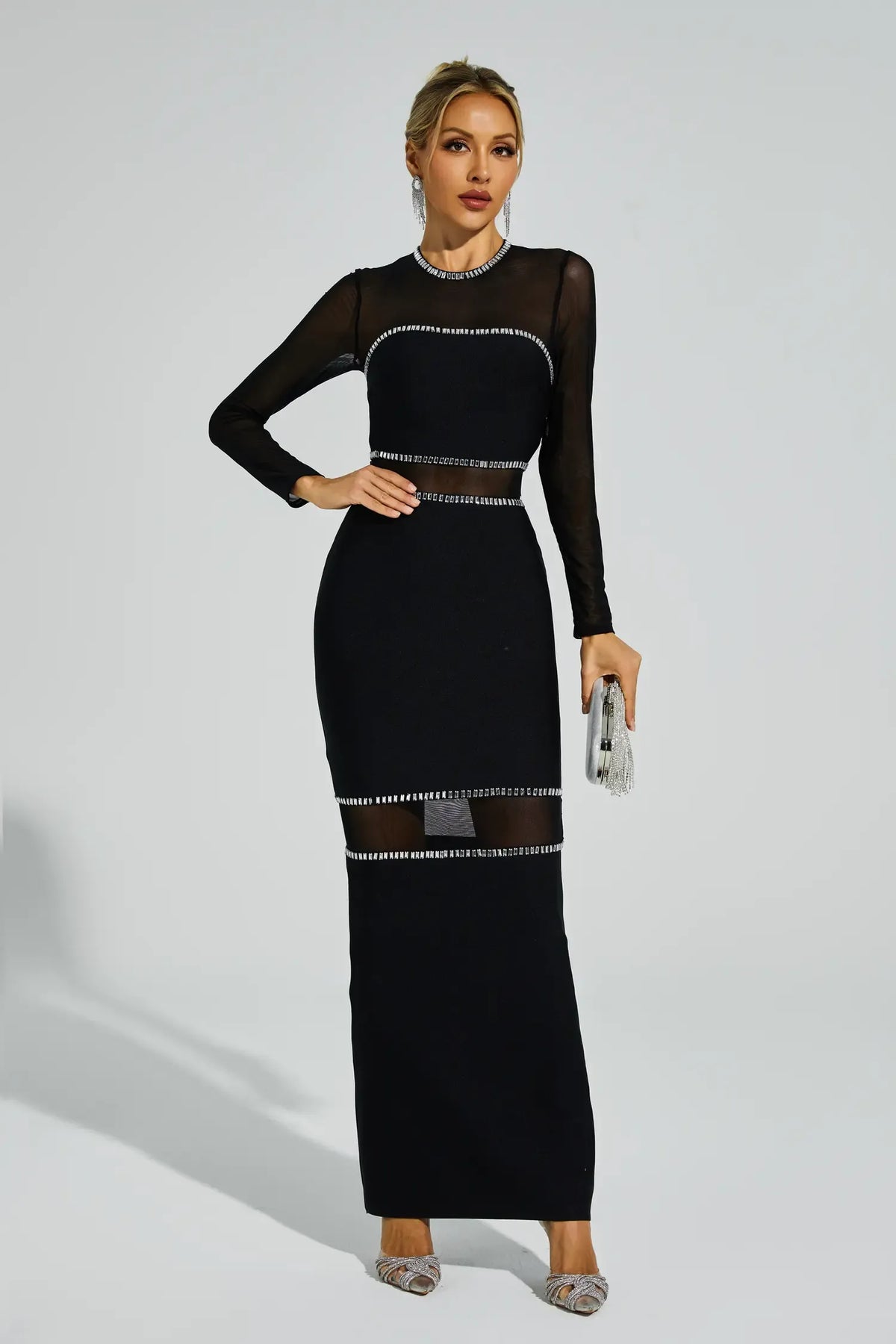Jazlyn Siyah File Bandaj Maxi Elbise