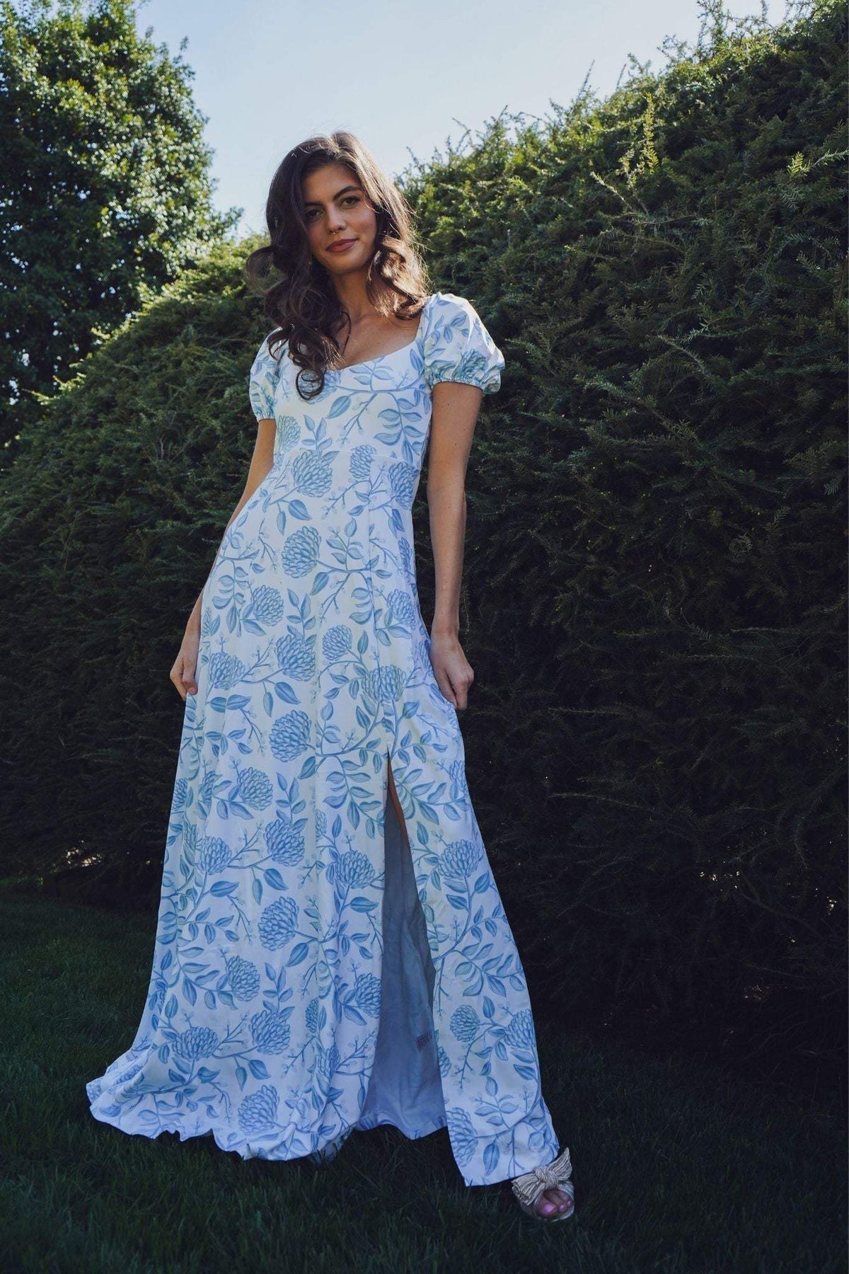 Jill Baskılı Boatline Yırtmaçlı Maxi Elbise