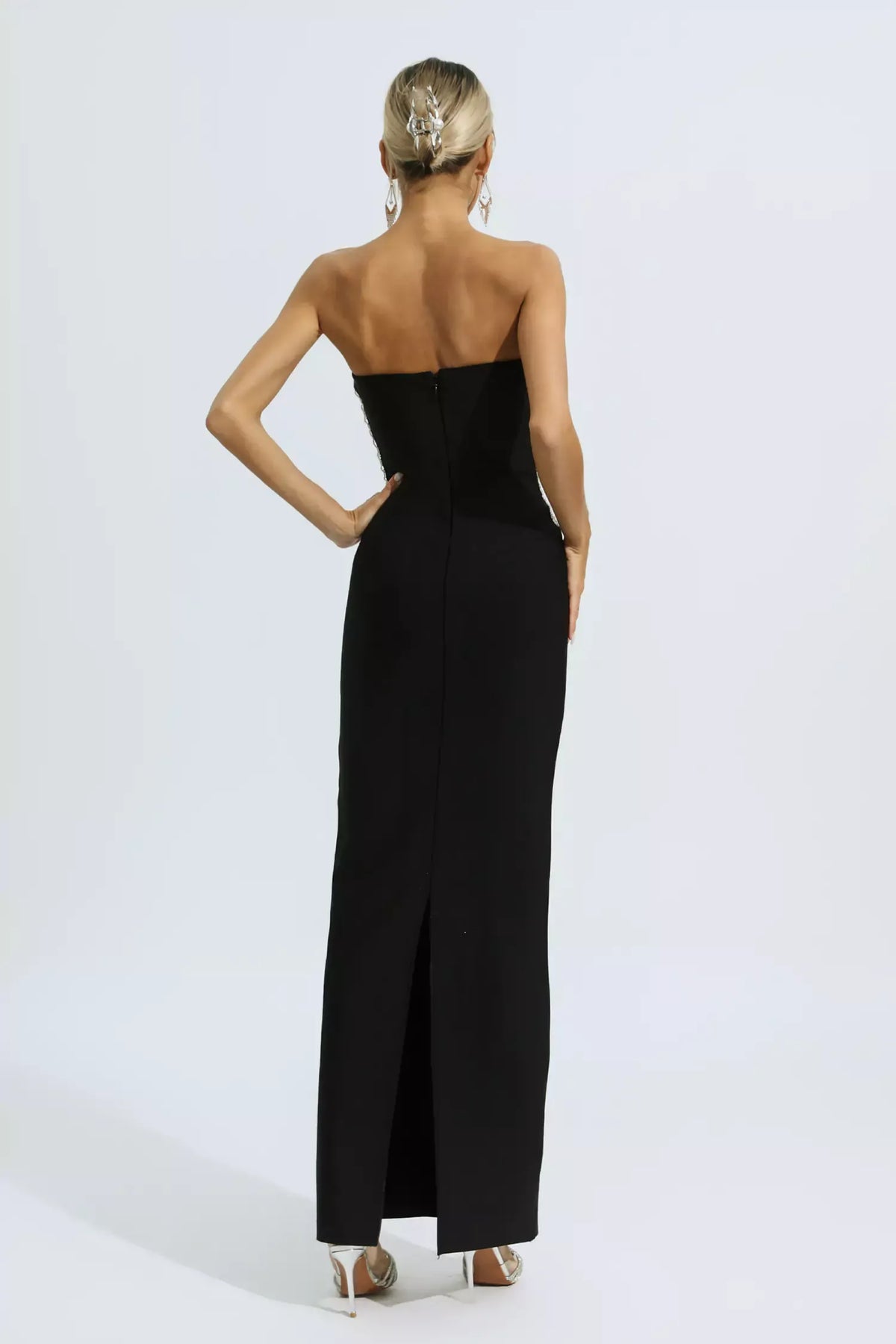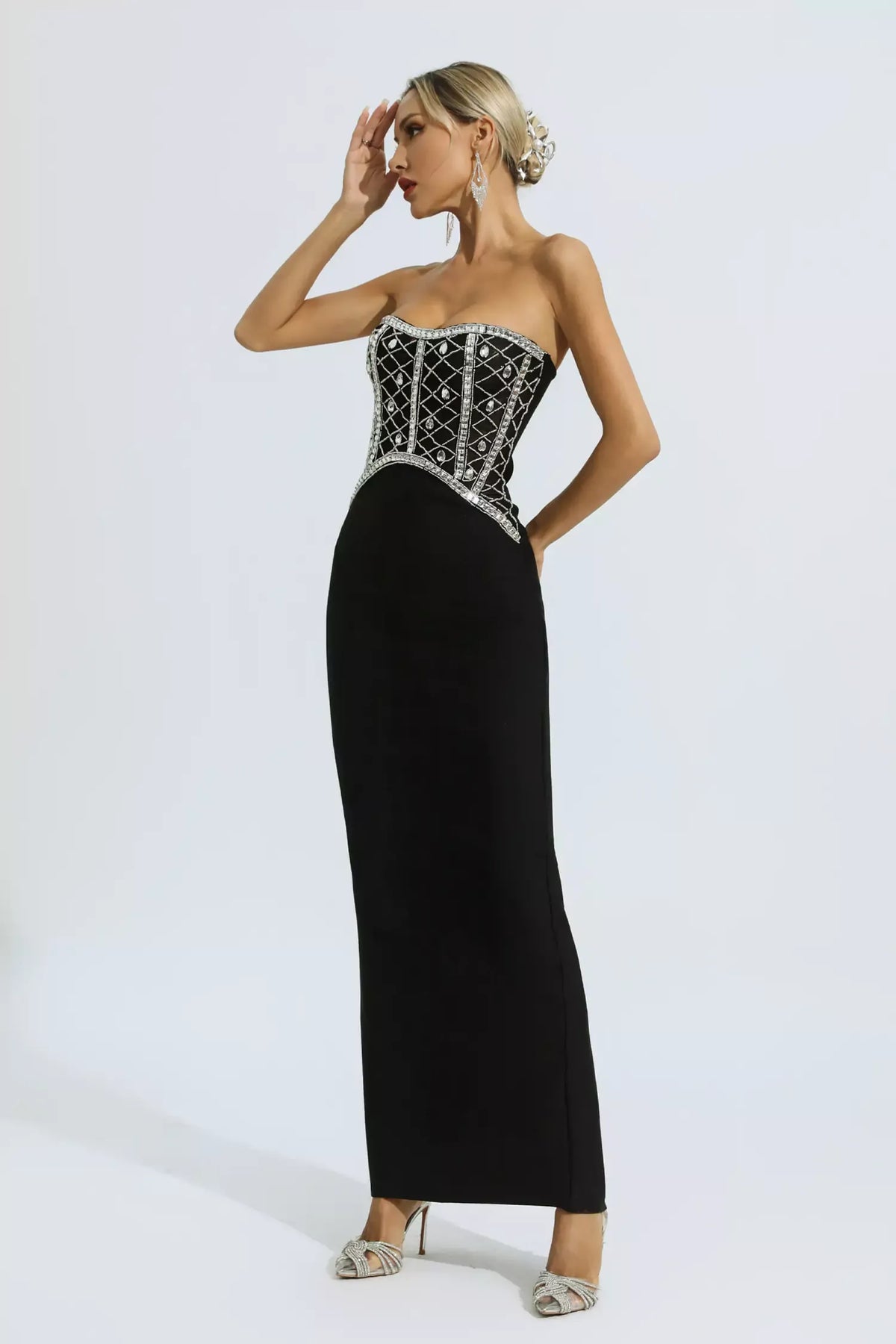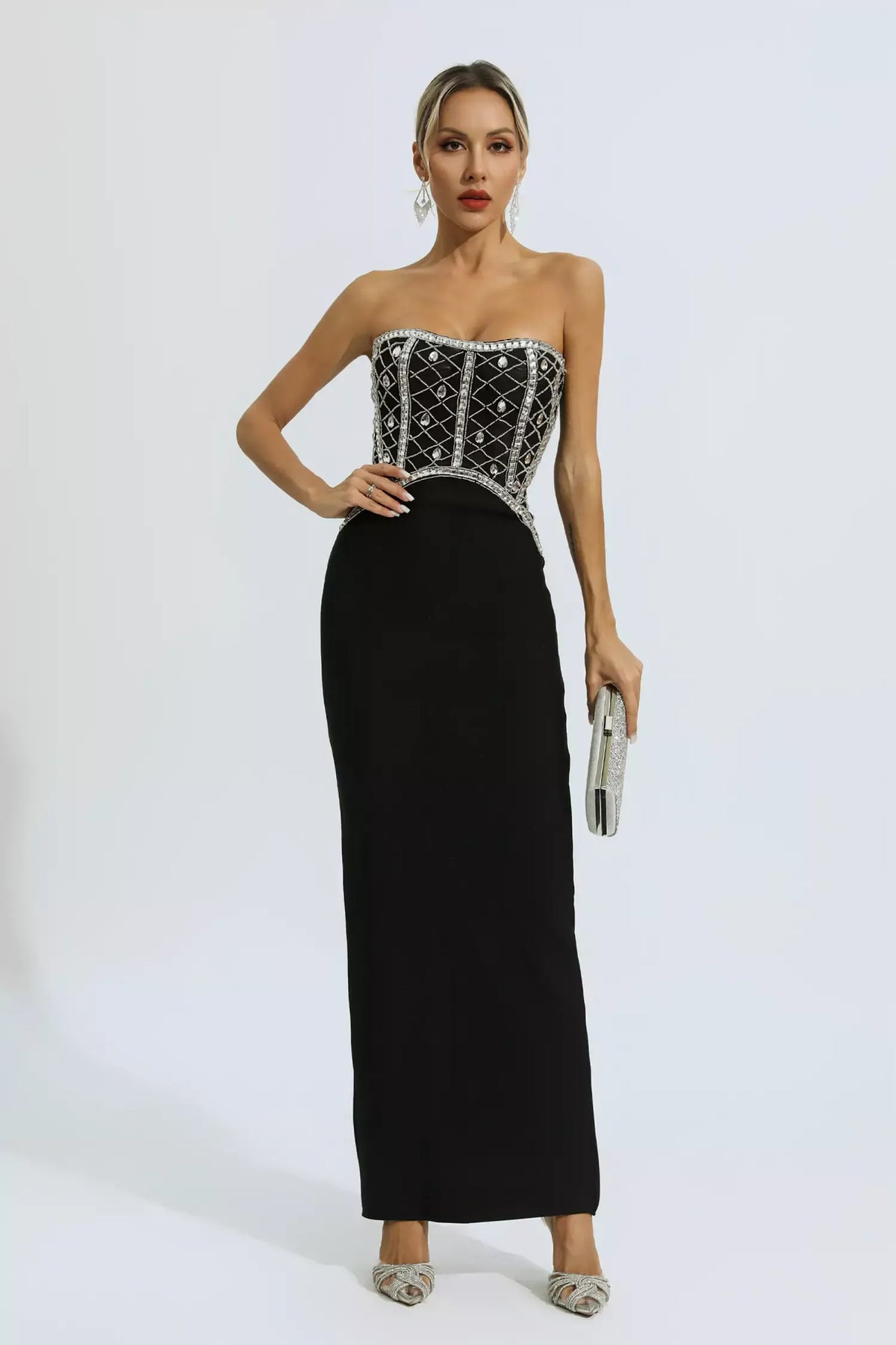 Jolie Siyah Boncuklu Bandaj Maxi Elbise