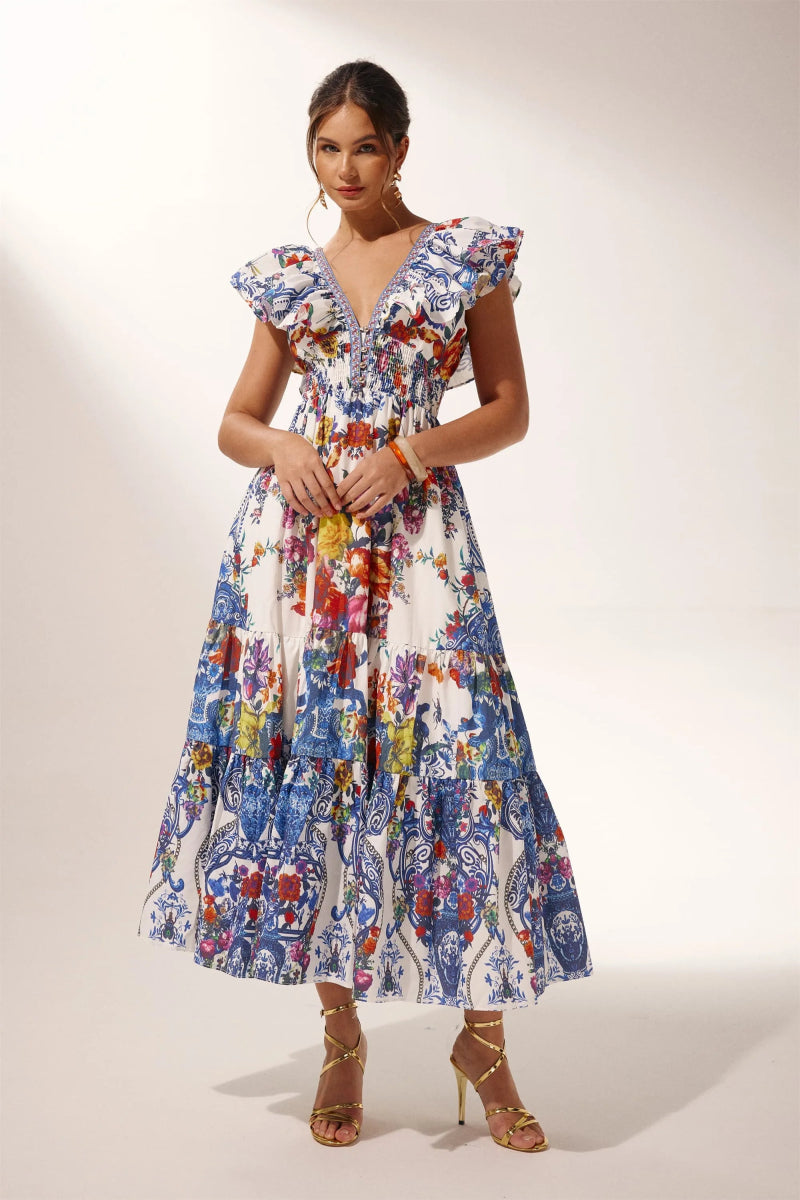 Haziran Çiçek Baskılı Fırfırlı Maxi Elbise