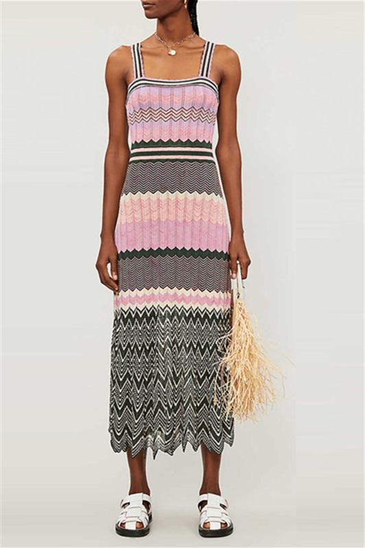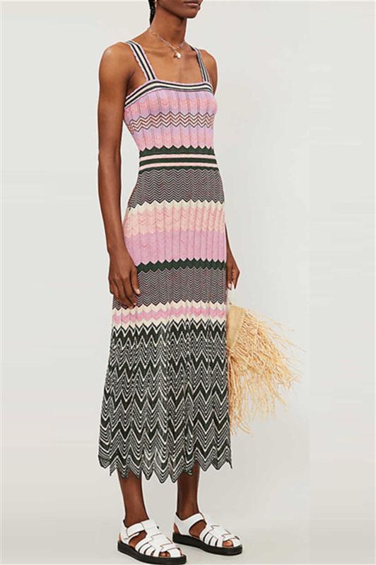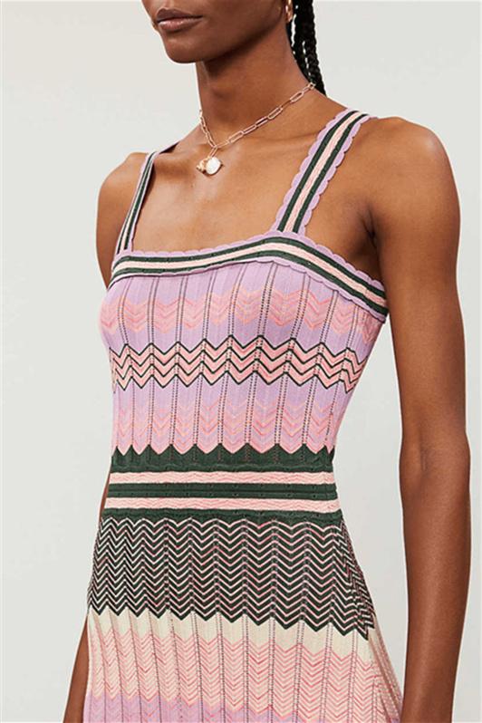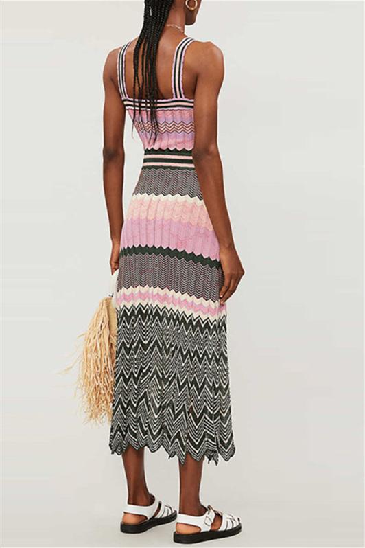 Kama Chevron Baskılı Uzun Triko Elbise