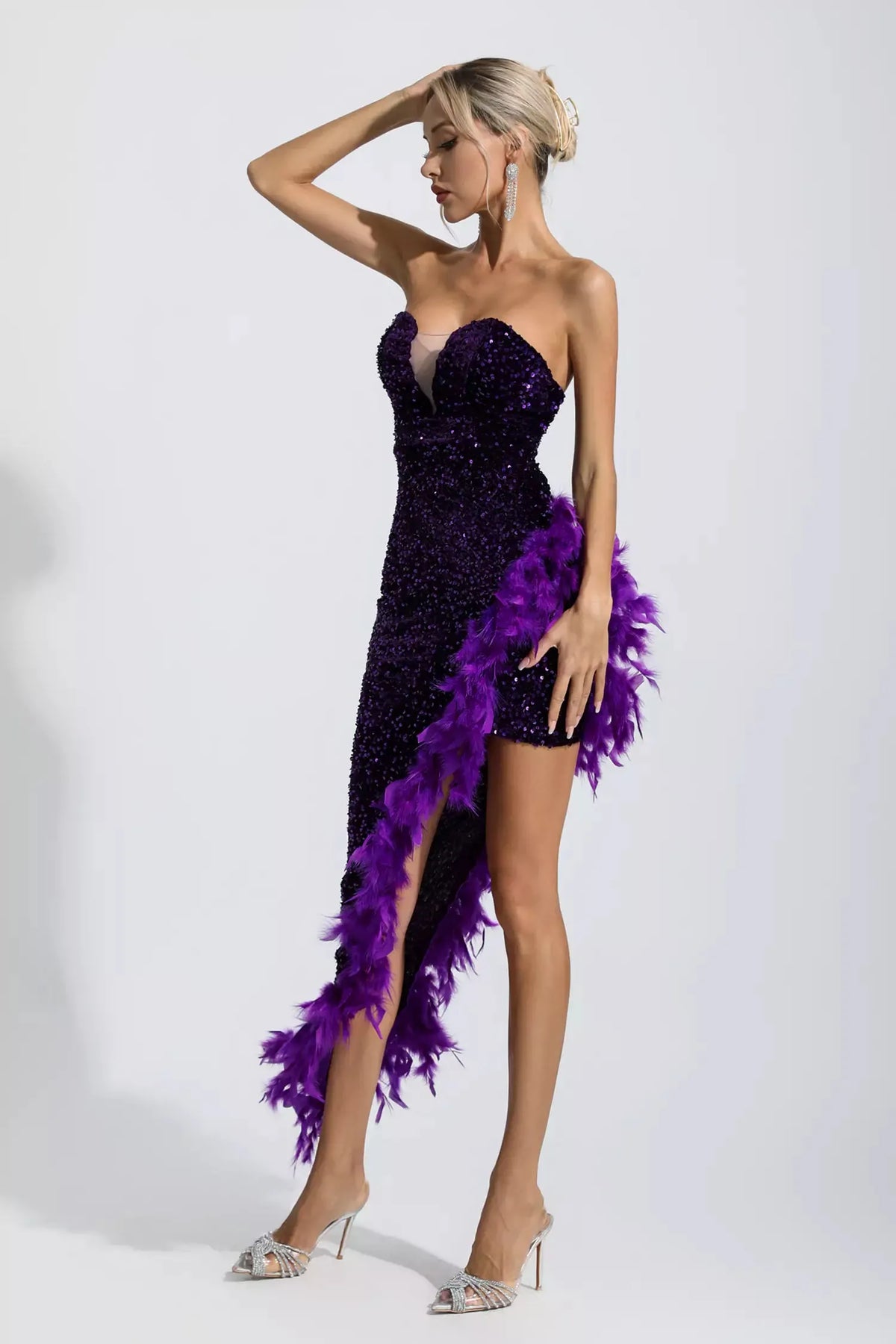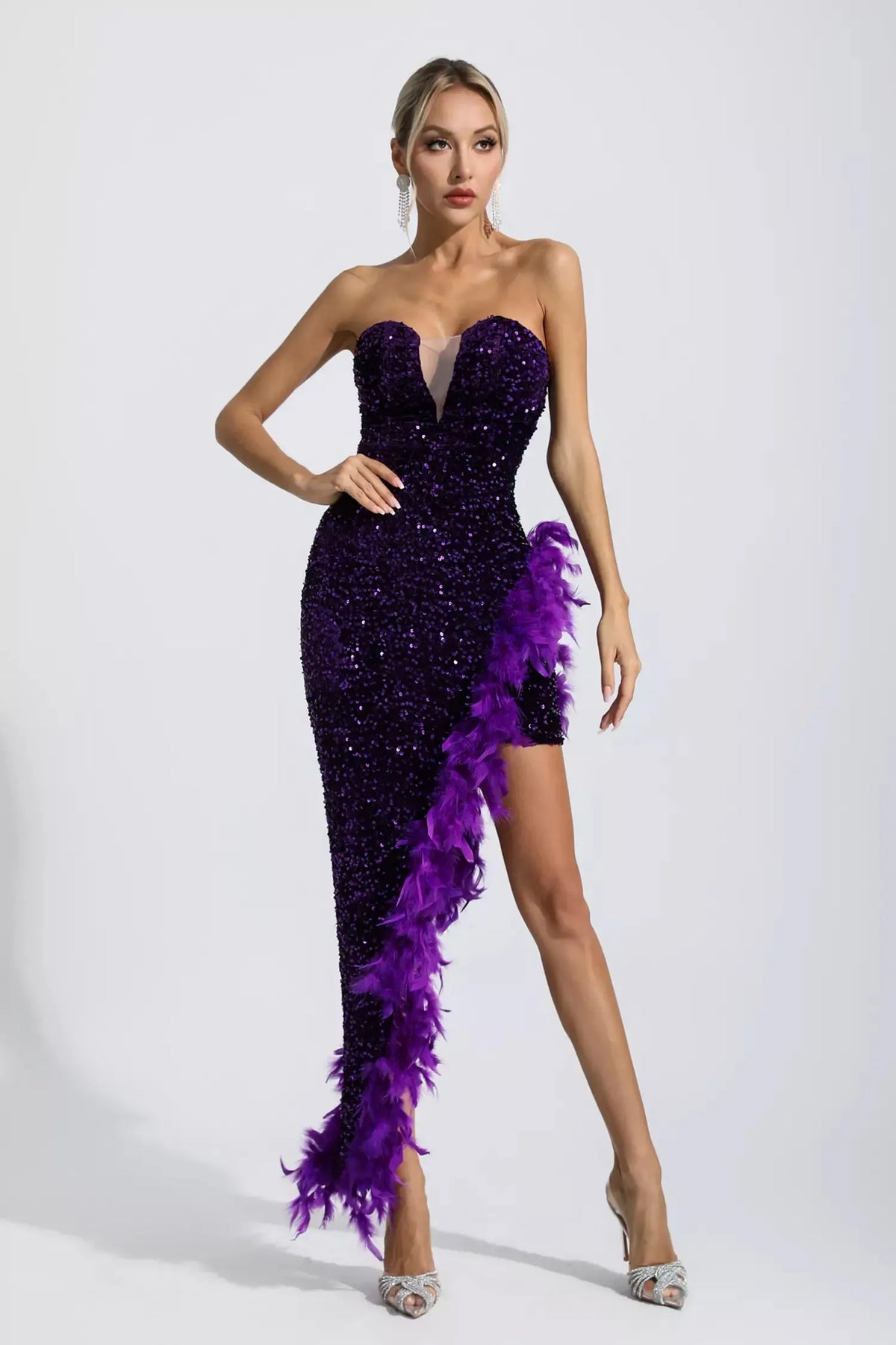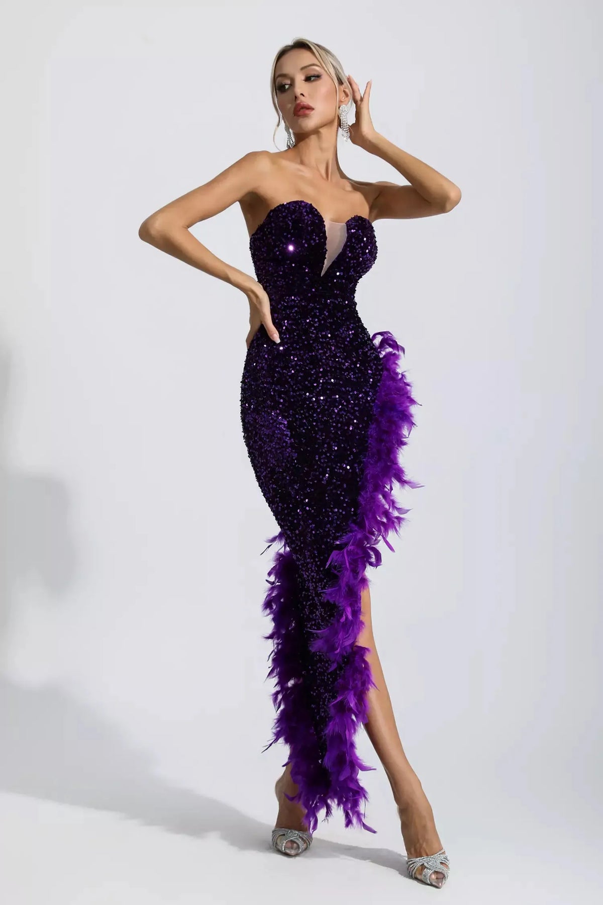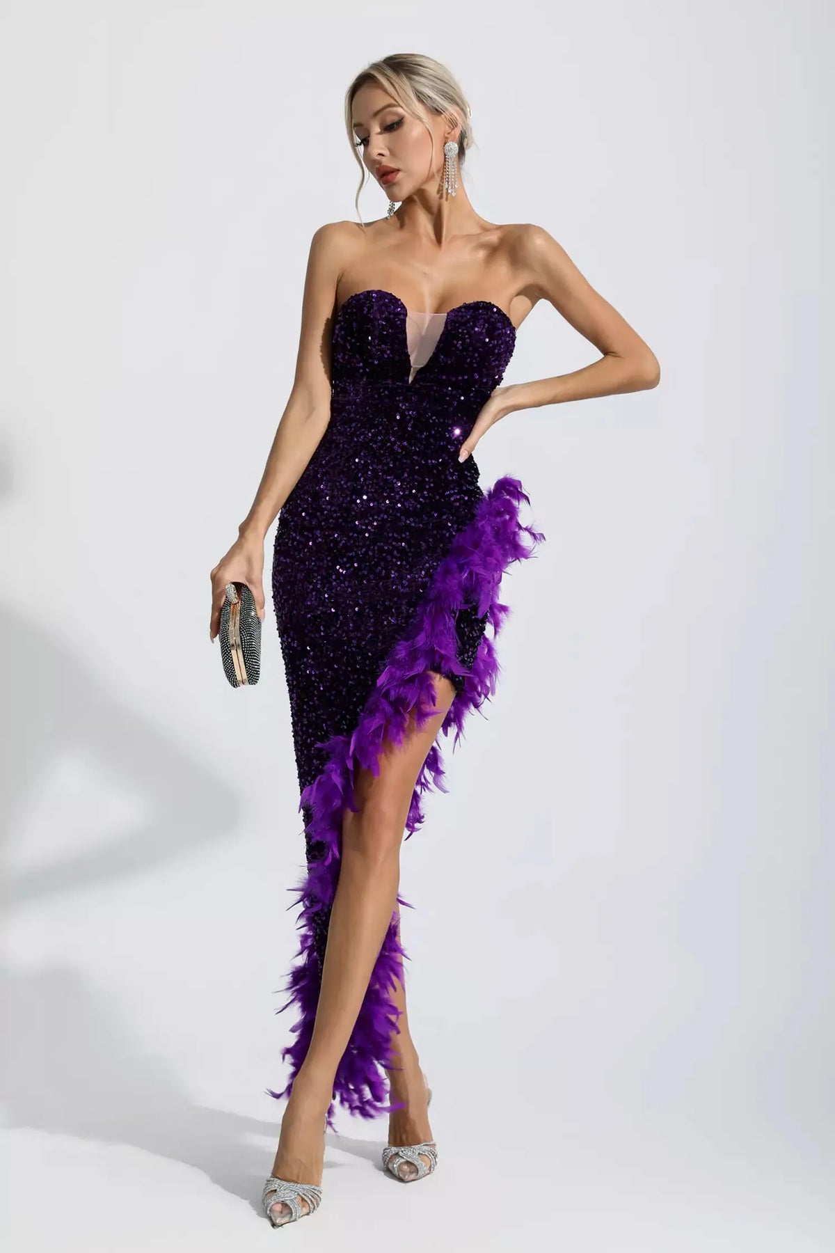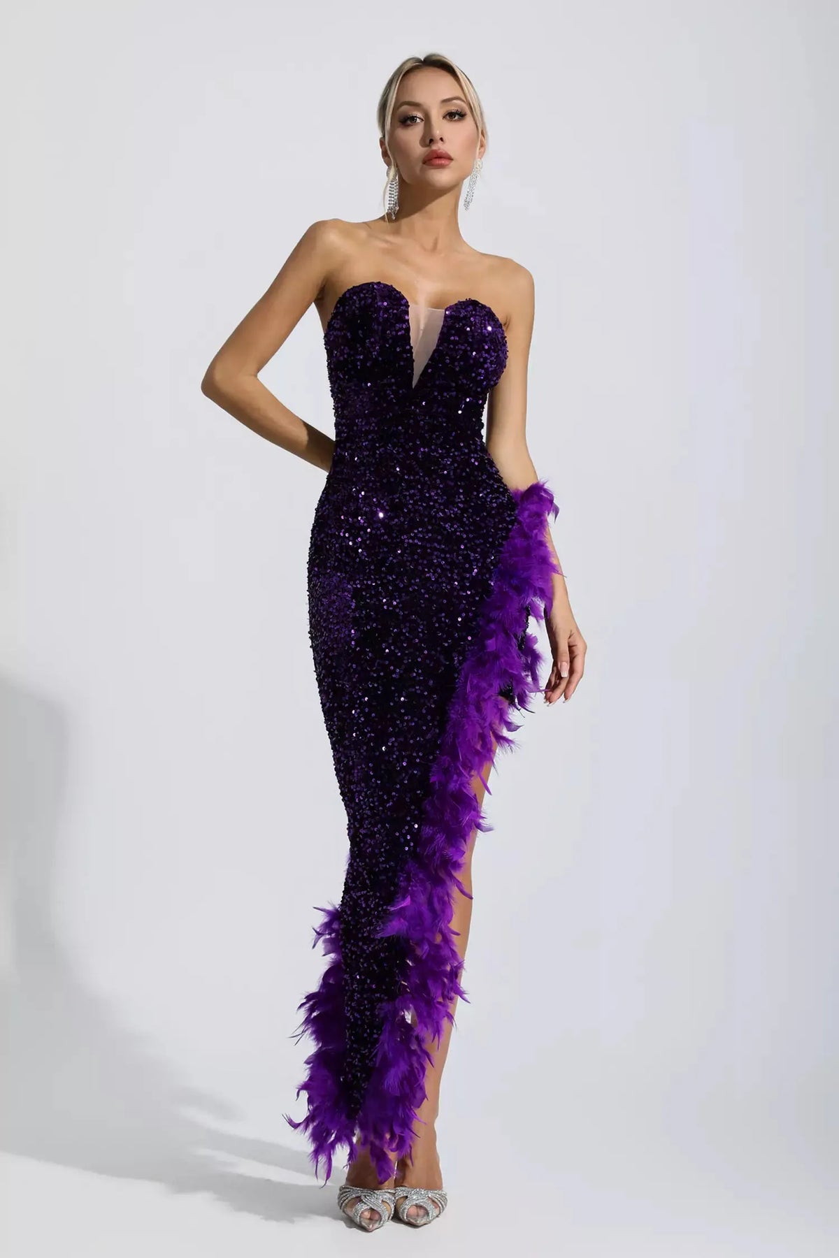 Kira Mor Payet Tüylü Maxi Elbise