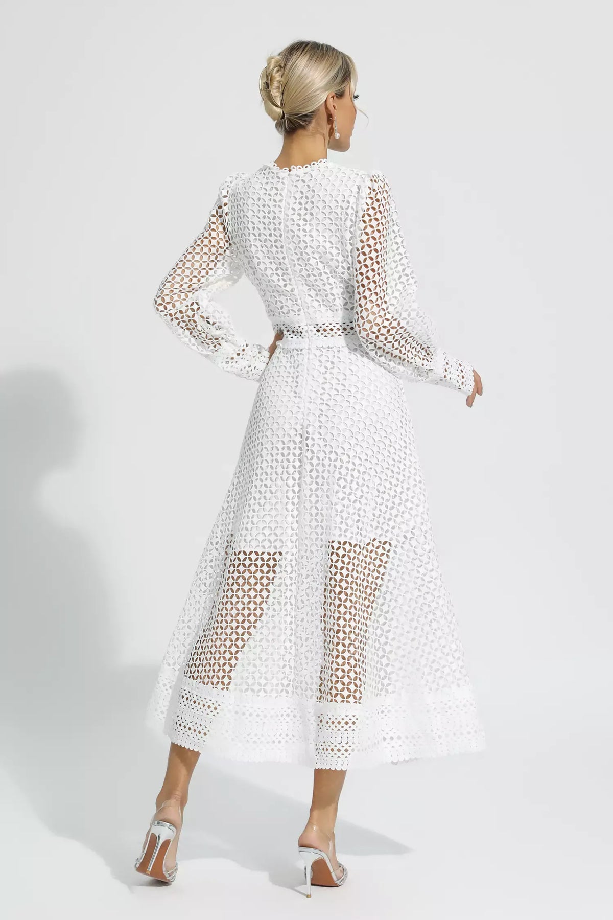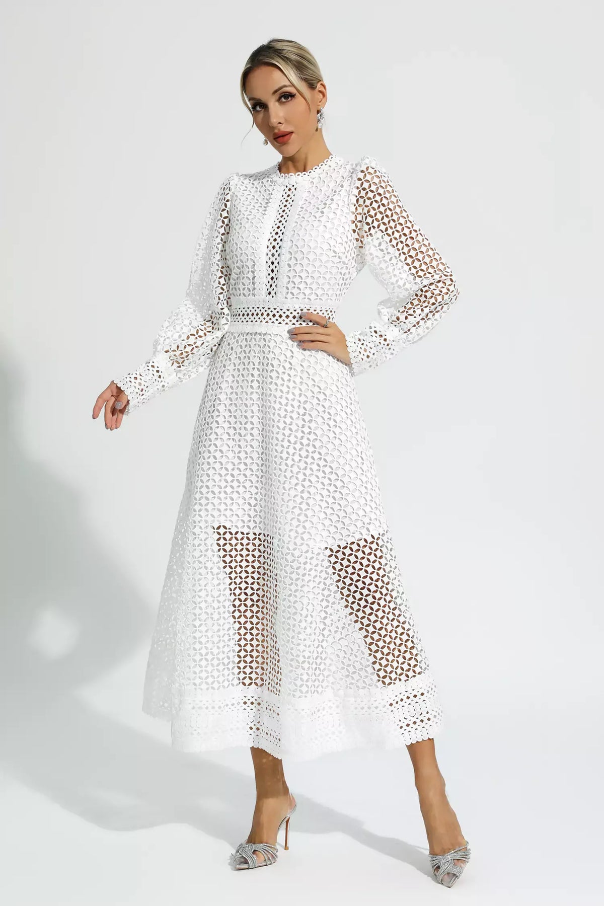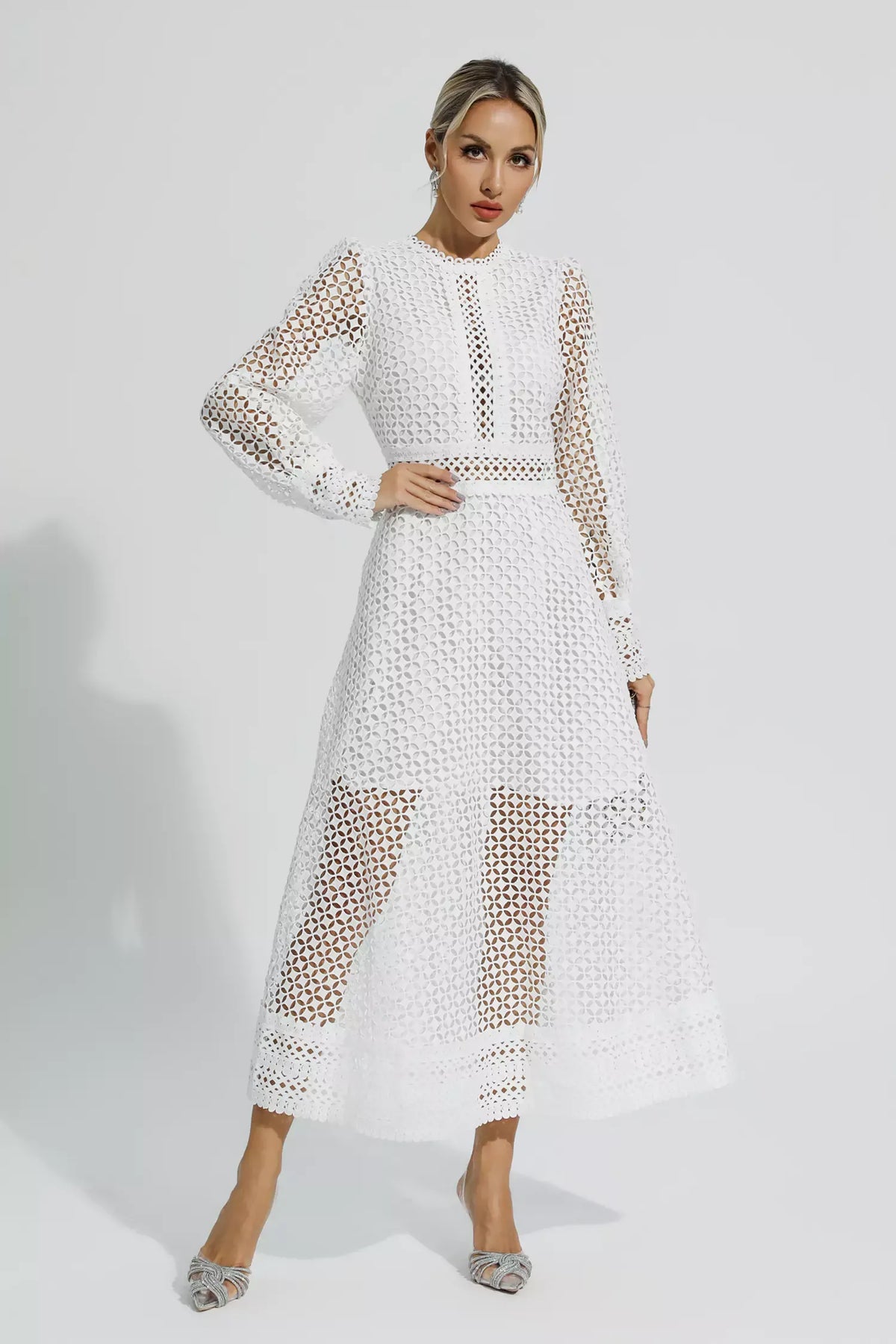 Monroe Beyaz İçi Boş Uzun Kollu Maxi Elbise