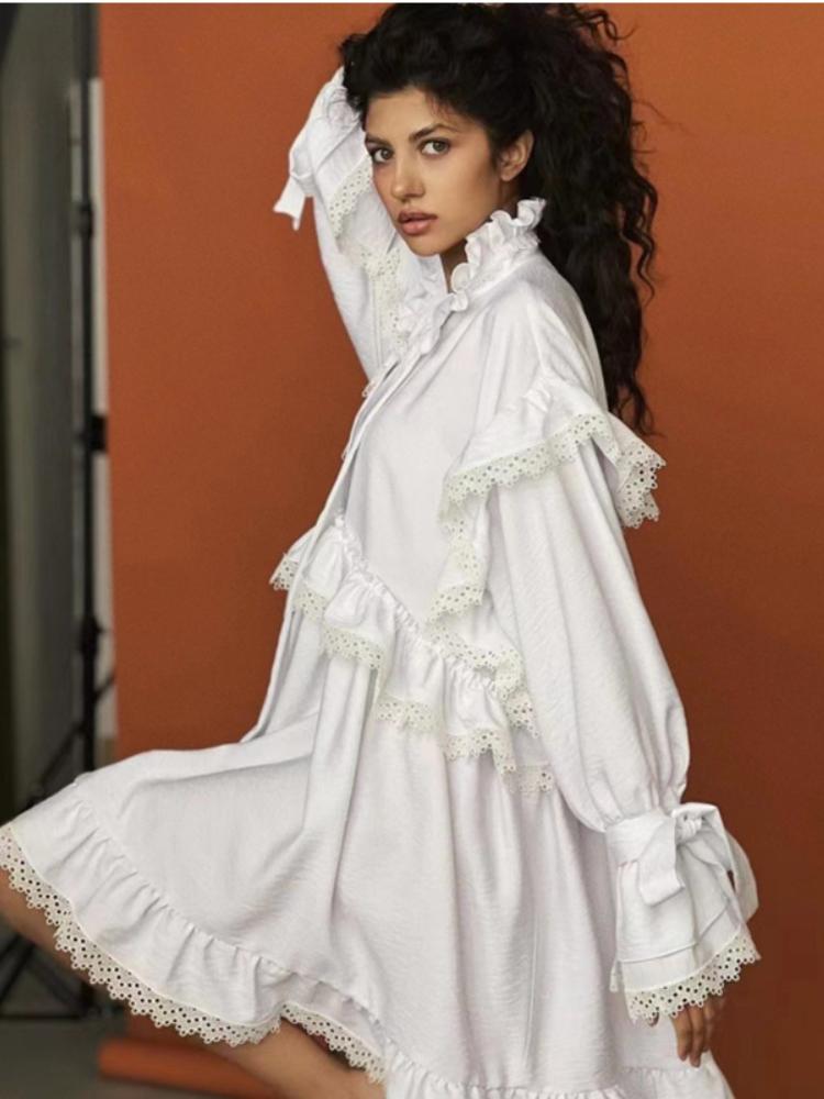 Nora Fırfırlı Fiyonklu Mini Bebek Elbise