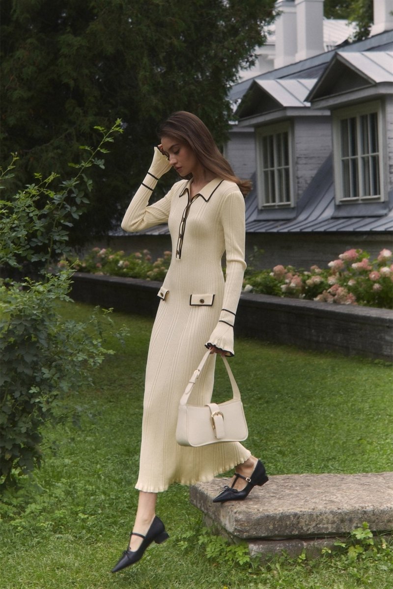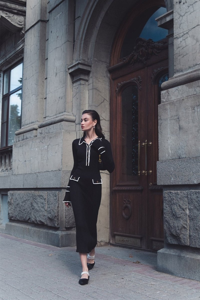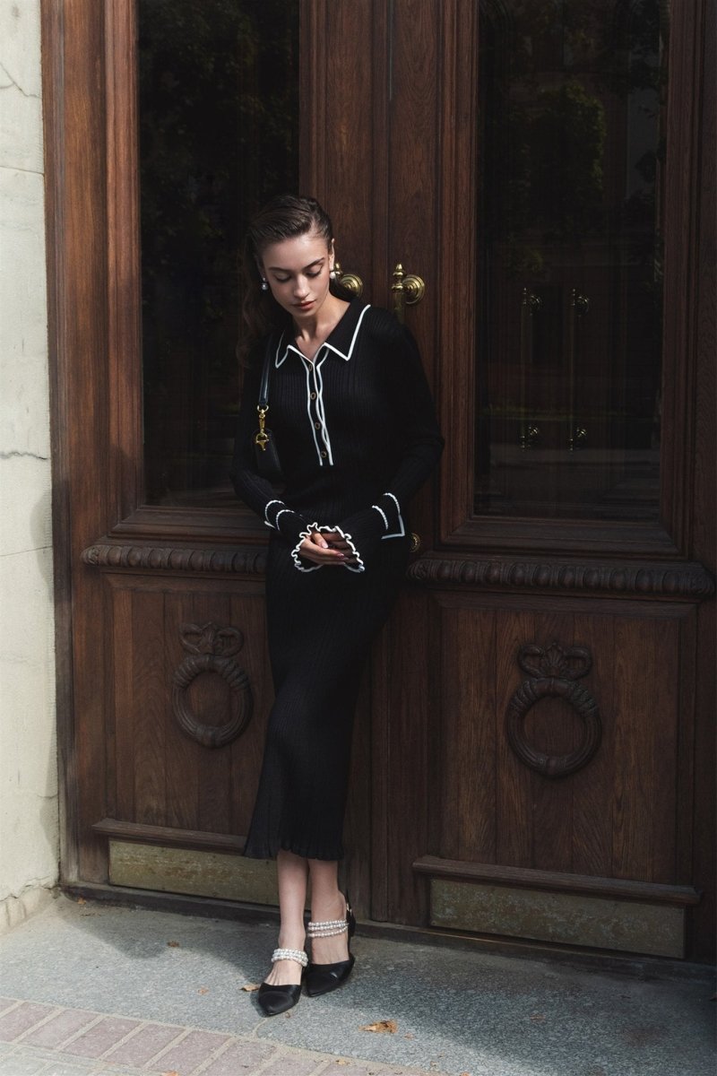 Novia Kontrast Fırfırlı Triko Uzun Elbise